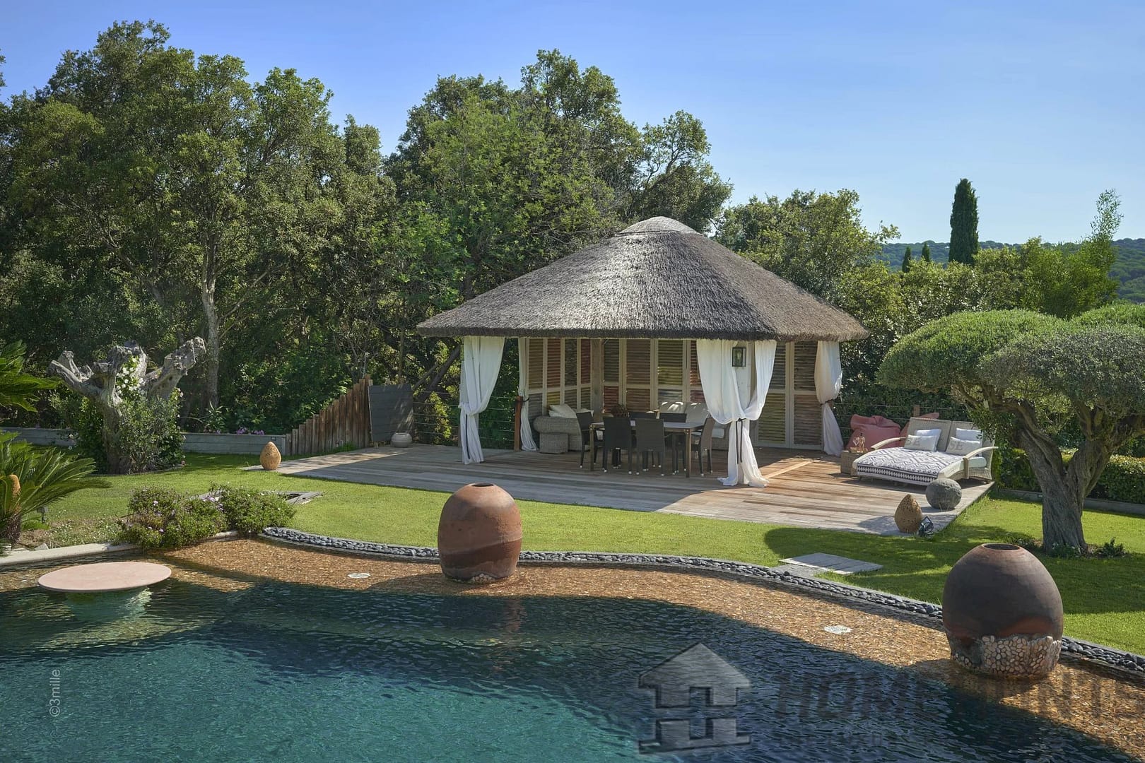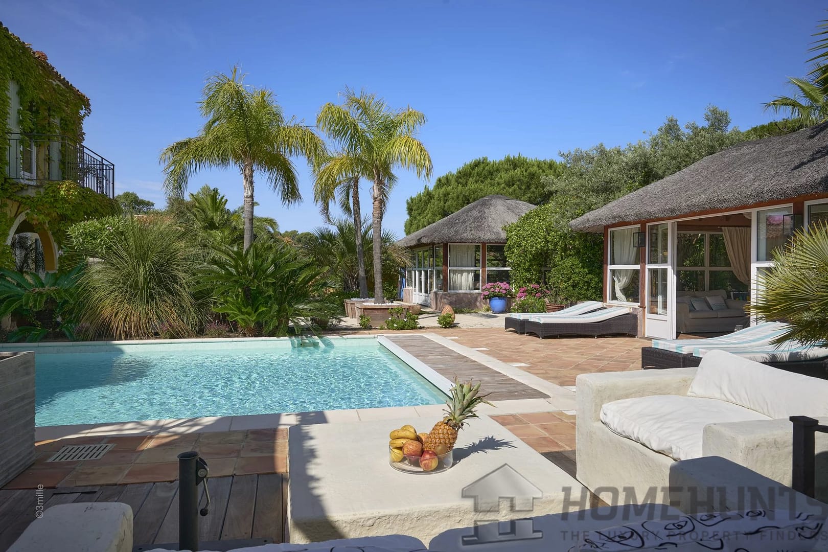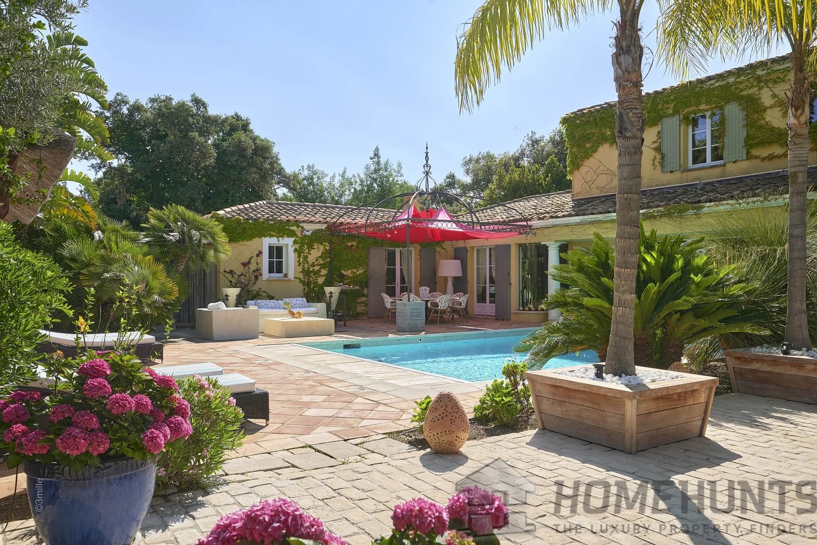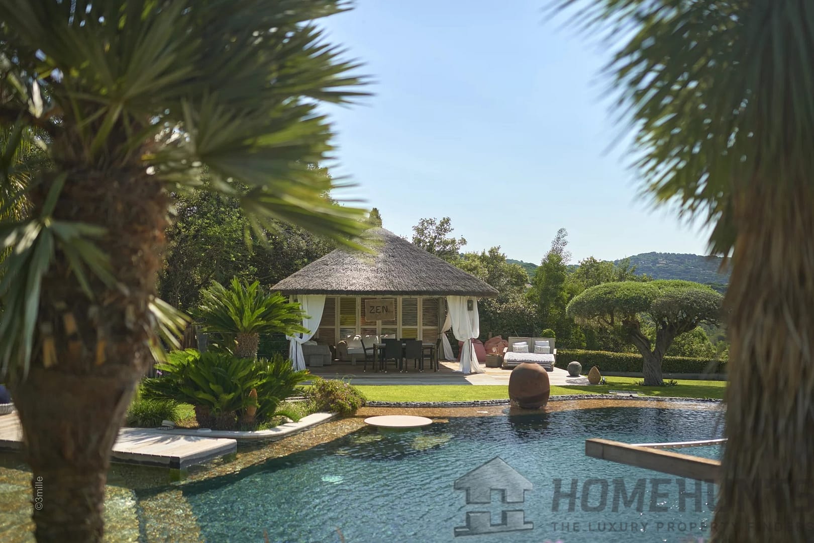 Magnificent palm trees, birds of paradise, olive trees and other species adorning the two swimming pools, adorn this property. A heavenly address, in absolute calm, with its dreamy sea view.