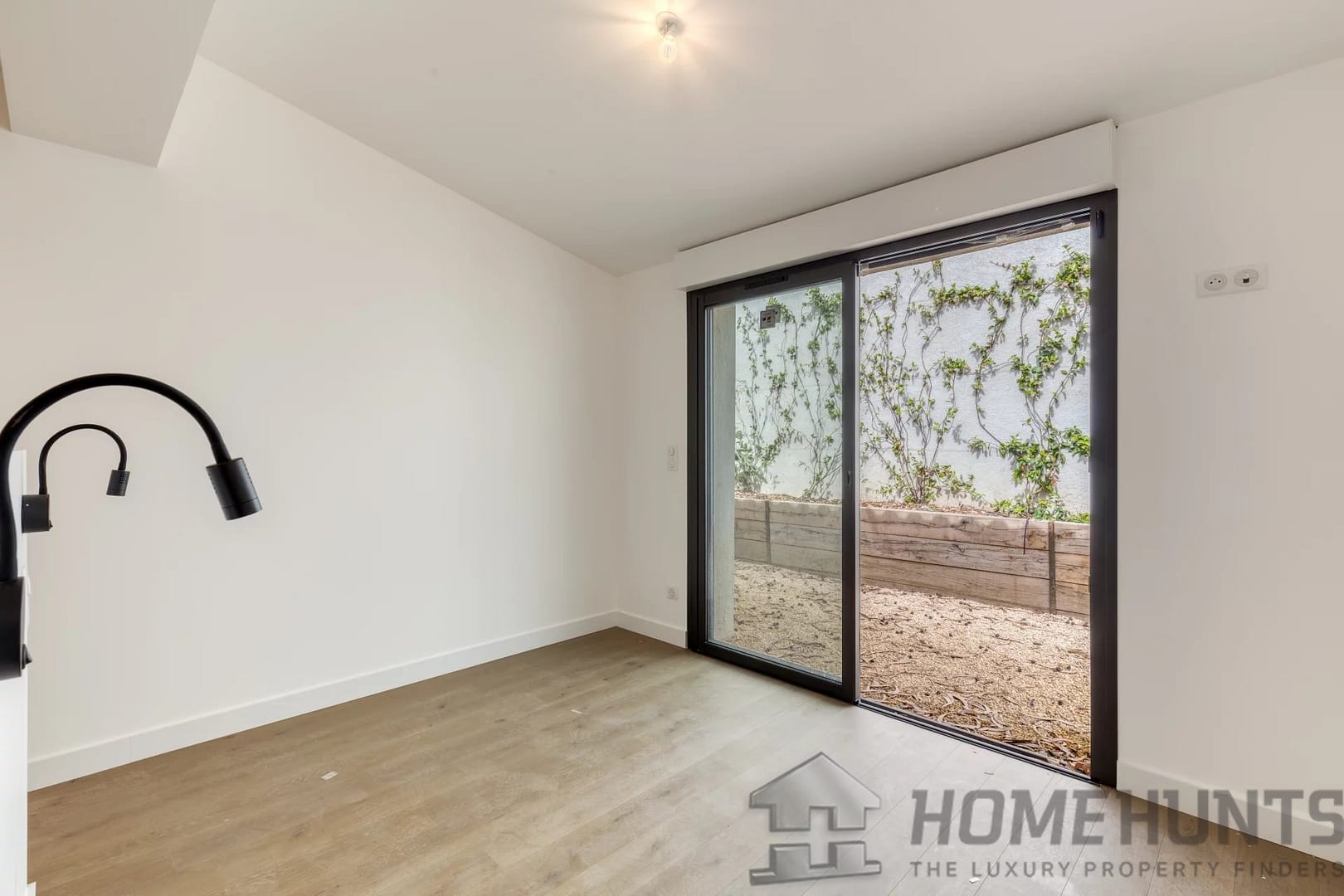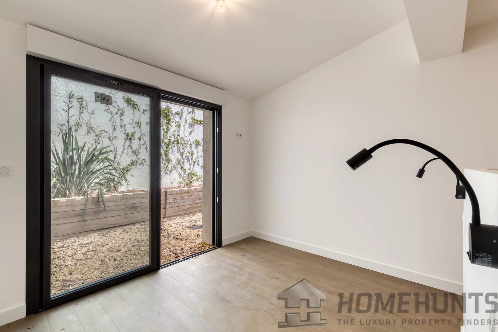 The garden-level flat has a living room with open-plan kitchen and an en suite bedroom with direct access to the garden.