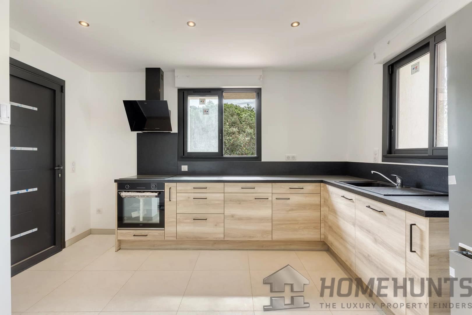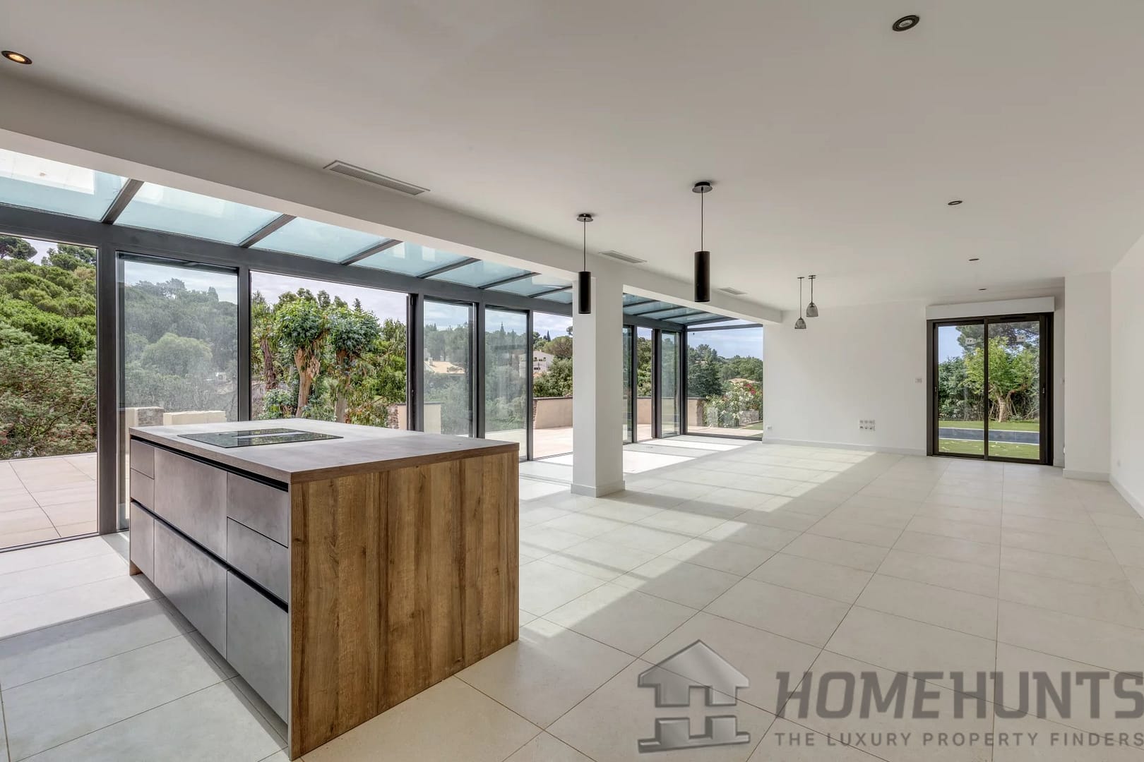 Facing south-east, the property is set in landscaped grounds of 1,015 m2, with a heated swimming pool and uninterrupted views of the countryside and the sea.