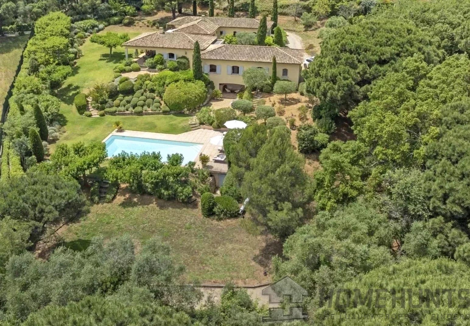 Set on a generous 5,000 m2+ landscaped estate, the villa enjoys open views over the rolling Gigaro hills and an abundance of southern sunlight. The interiors are bathed in natural light, with soaring ceilings, exposed beams, and a dramatic cathedral-style living room centred around a wood-burning fireplace. The fully equipped kitchen opens onto a broad, shaded terrace, perfect for al fresco dining and entertaining.