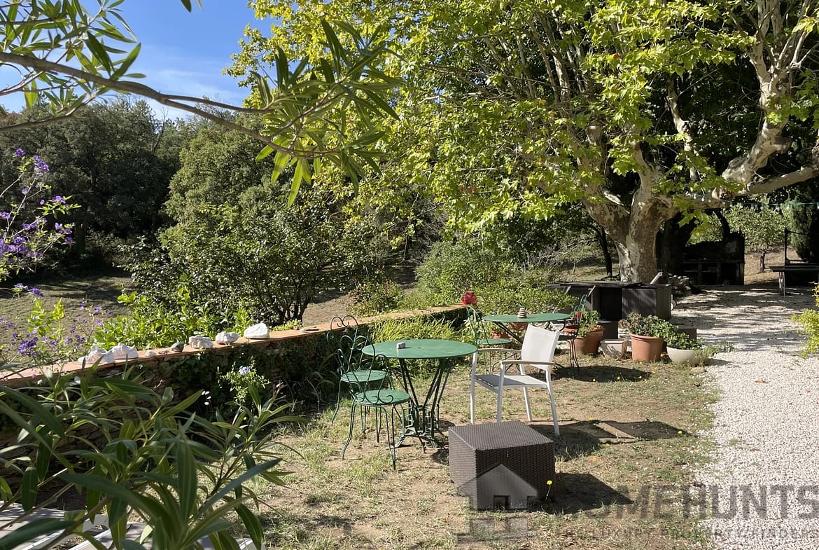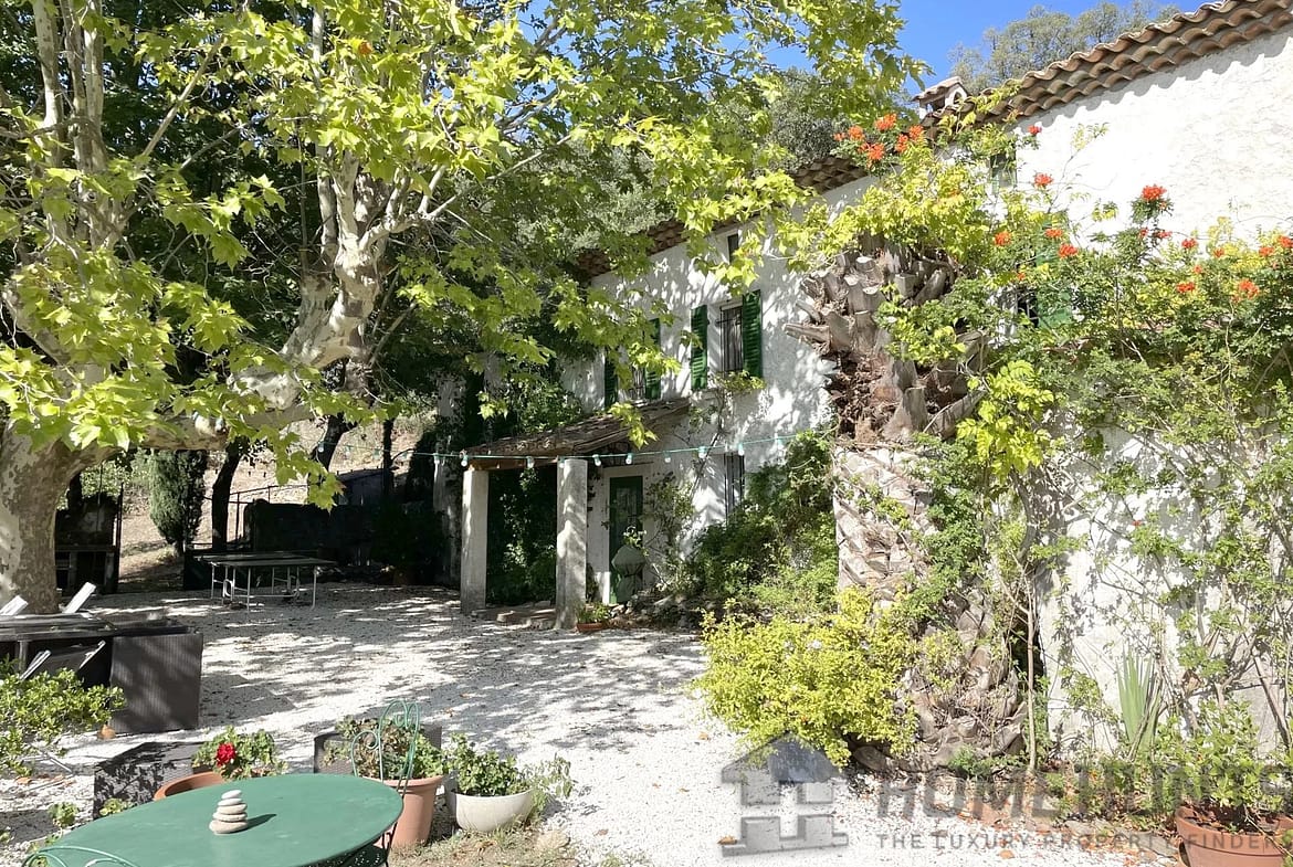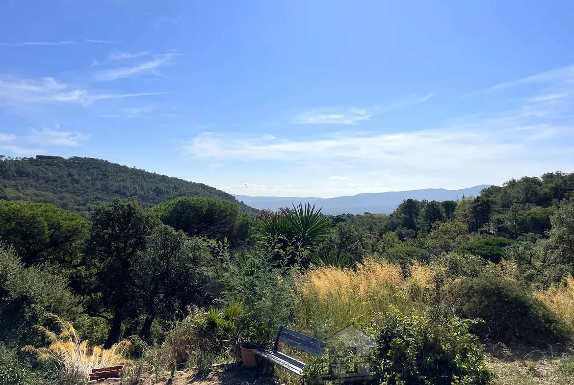 2.5 km from the village of La Garde-Freinet, in grounds of over 10 hectares, an old character property of exceptional charm, with ancient terraces, superb trees, pond and spring.