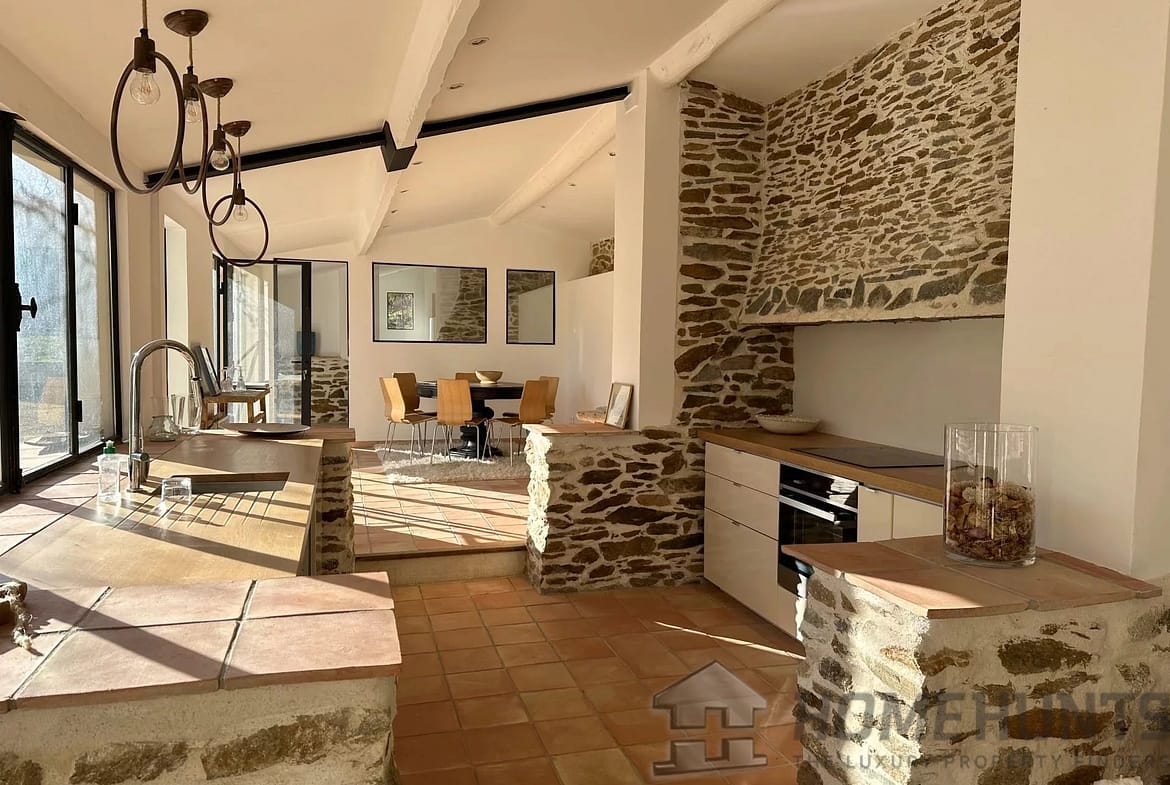 Renovated old house of approx. 200 m2 situated in beautiful, undulating grounds of over one hectare, full of charm, with attractive meadows and low stone walls.