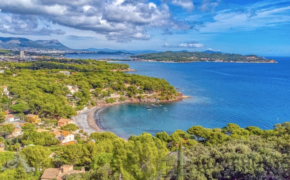 A rare opportunity to acquire a refined coastal residence in one of the most sought-after residential enclaves near Six-Fours-les-Plages, overlooking the tranquil Bay of Fabregas. This exceptional architect-designed villa, completely renovated in 2017, offers approximately 238 m2 of contemporary living space, beautifully set on a 1,200 m2 landscaped plot.