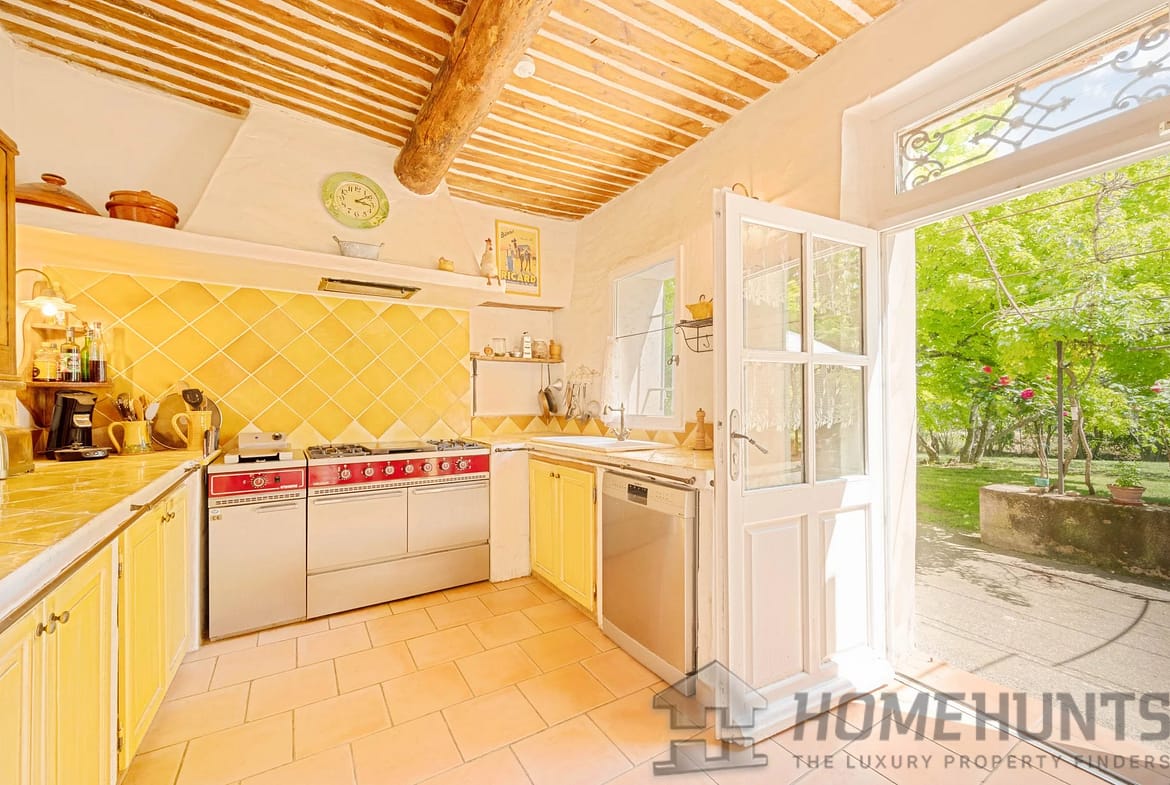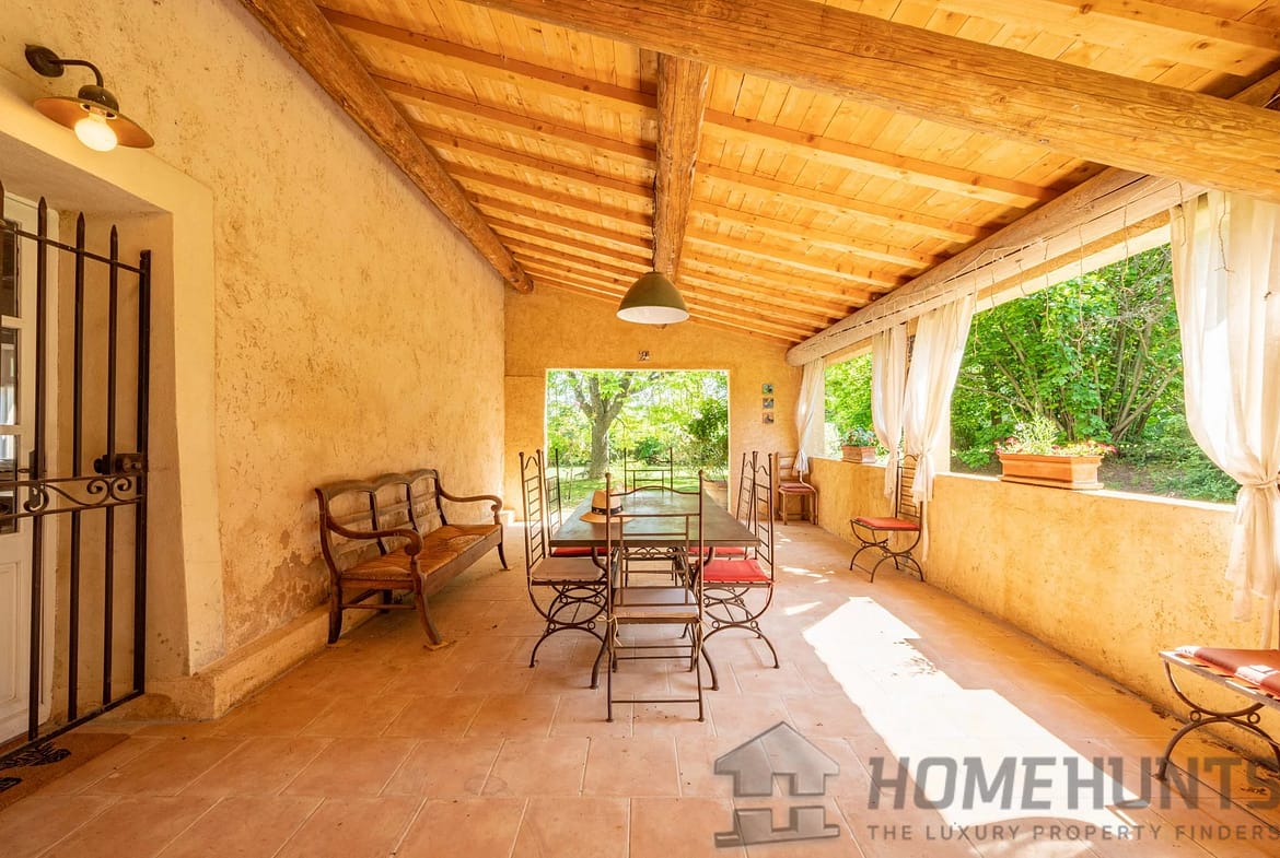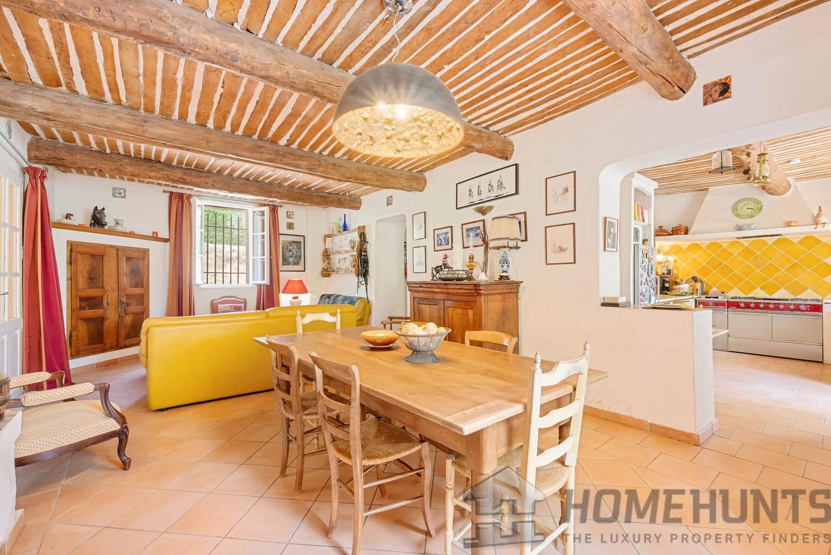 This rare property for sale is located in the countryside near the village of Ansouis. The farmhouse is composed of a beautiful living room with fireplace which opens onto a large covered terrace with summer kitchen and barbecue, a separate Provencal-style kitchen opening onto a south-facing terrace, a WC, a cellar and a garage.