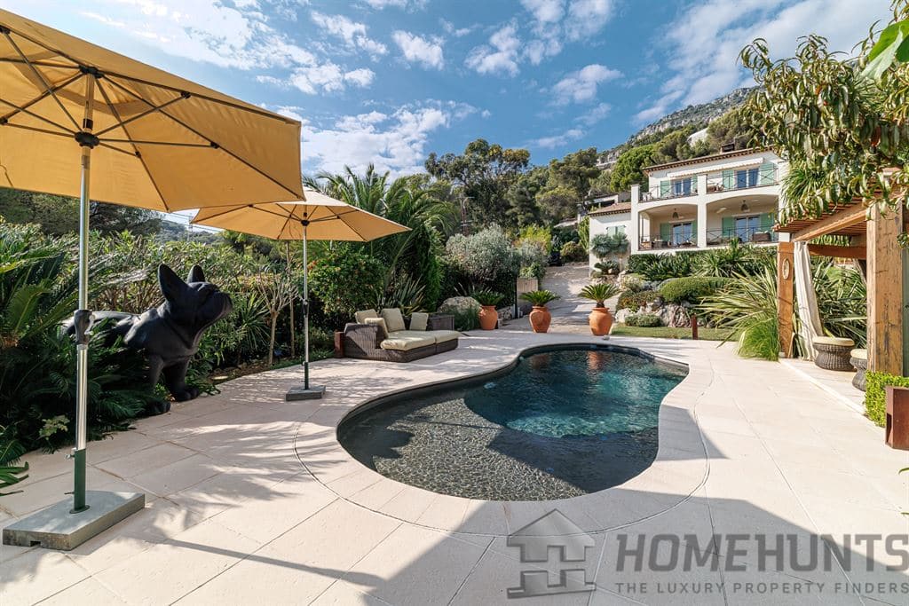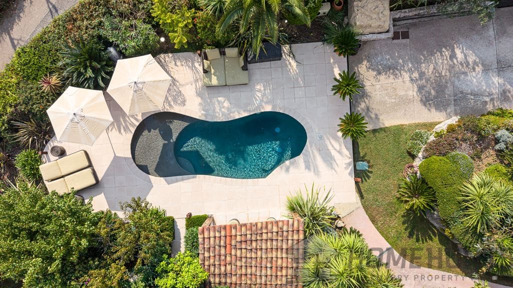 Set on a 1,500 m2 plot, the property includes a landscaped garden, swimming pool, and several south-facing terraces.