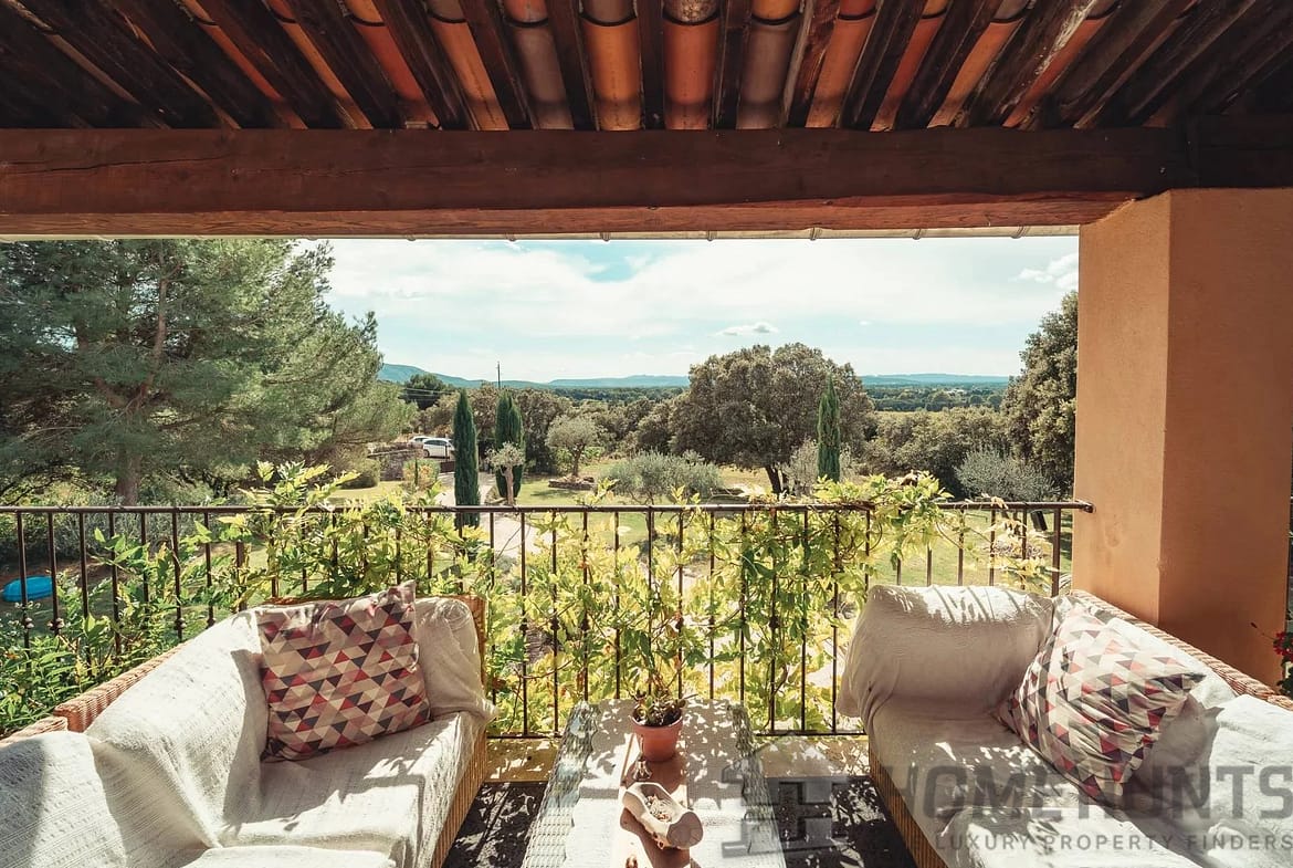 Located on the heights of Lagnes, this property enjoys a privileged location just 10 minutes from L’Isle-sur-la-Sorgue and 5 minutes from the Saumane golf course.