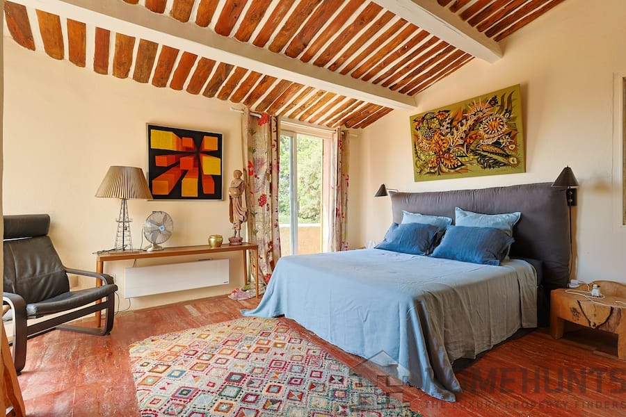 The interior is characterised by impressive volumes, Iranian travertine flooring and Provencal ceilings, giving it a unique character and atmosphere.