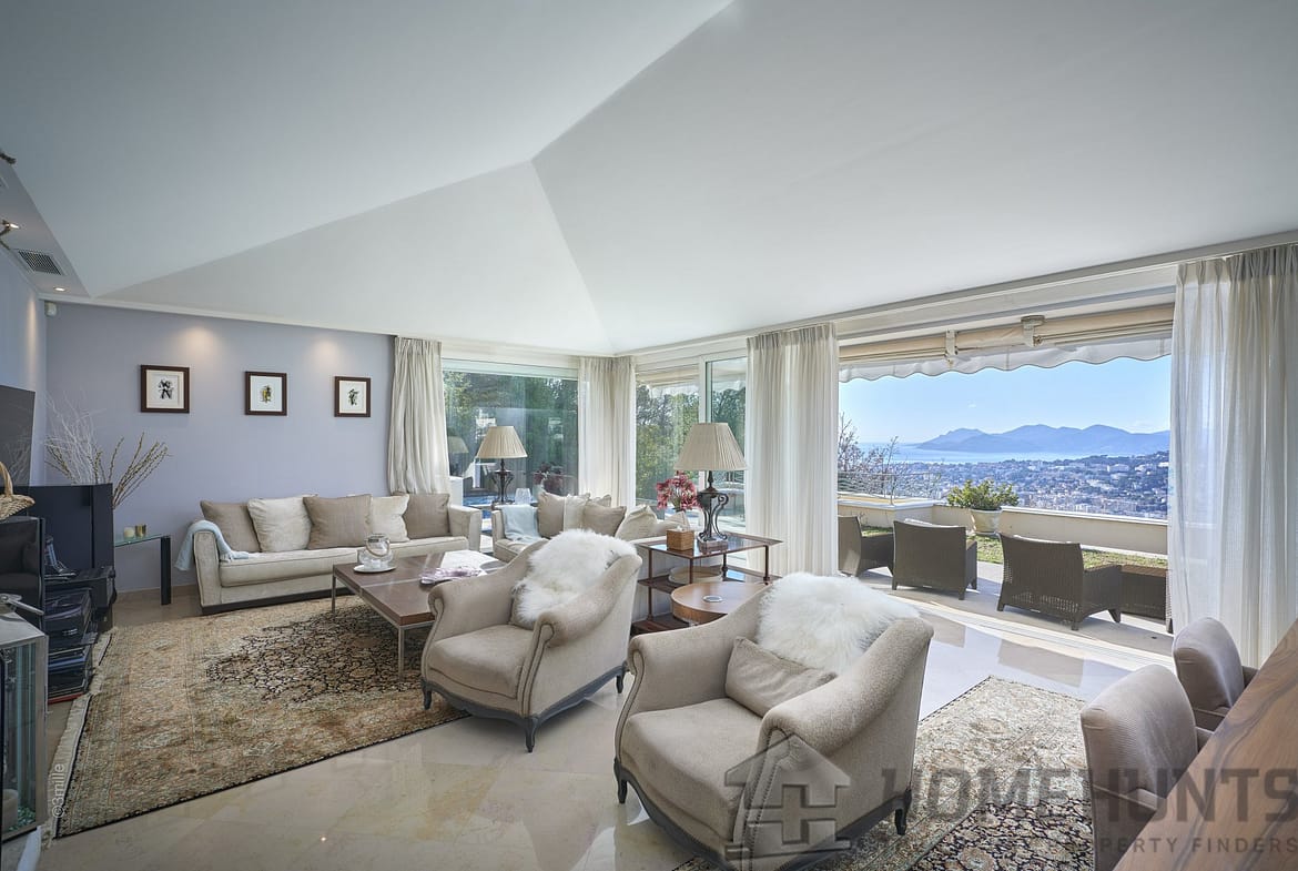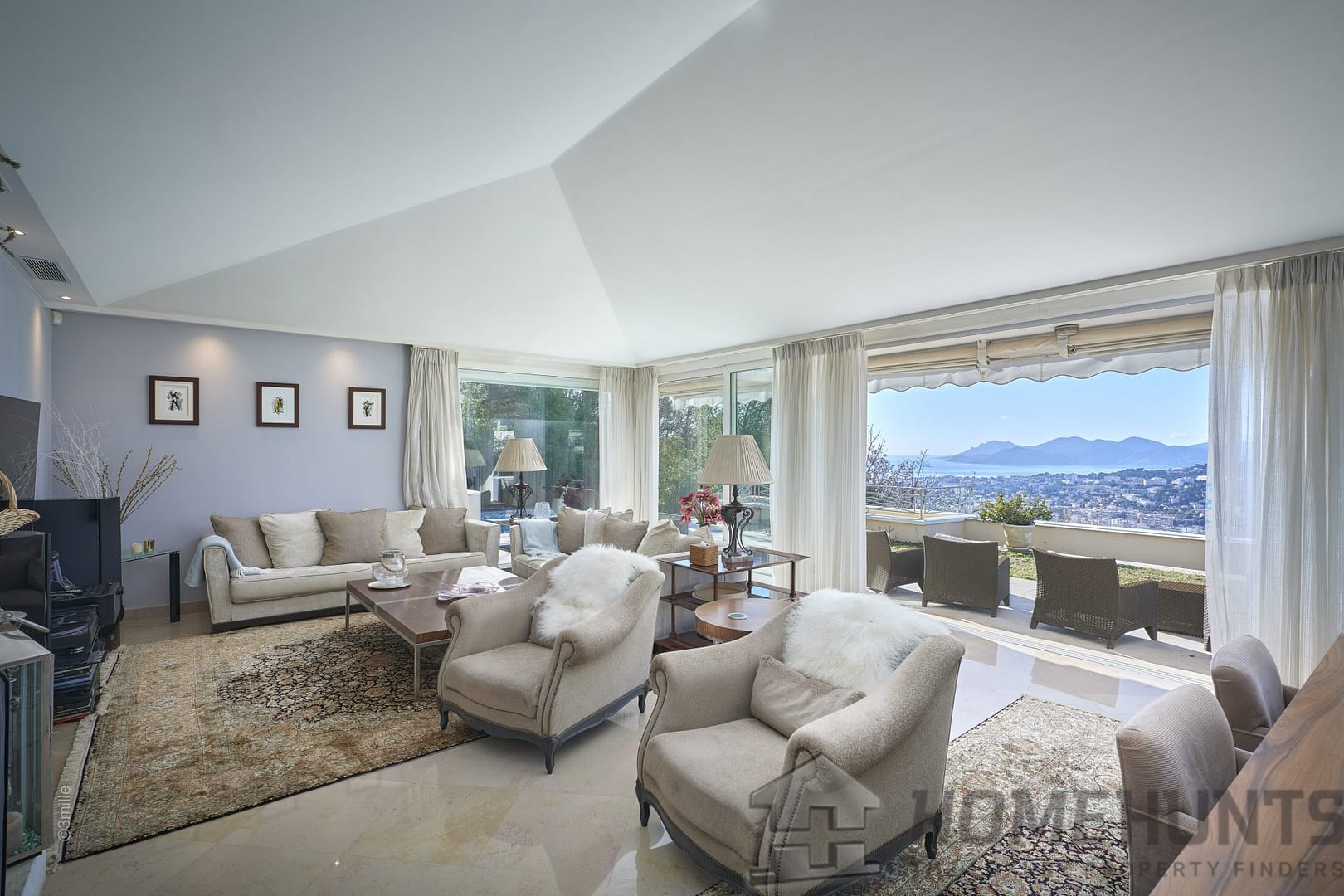 In a dominant position on the heights of Cannes and located in the heart of a closed domain, beautiful modern villa enjoying beautiful volumes as well as a panoramic view of the sea.
