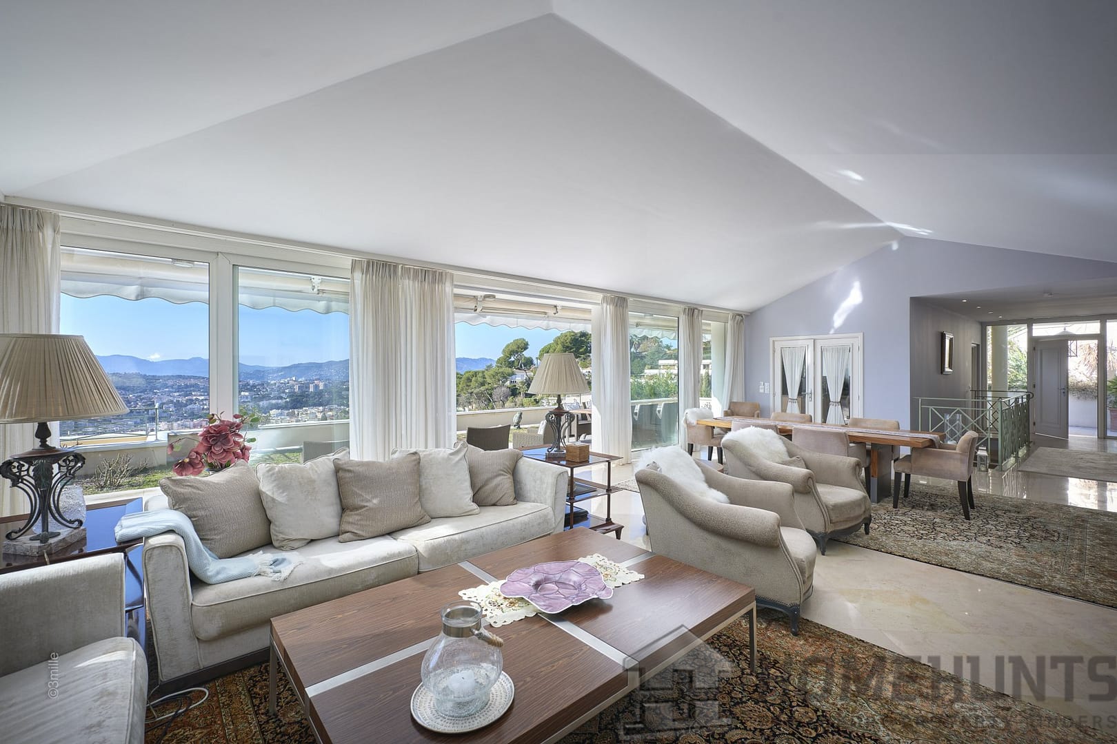 In a dominant position on the heights of Cannes and located in the heart of a closed domain, beautiful modern villa enjoying beautiful volumes as well as a panoramic view of the sea.