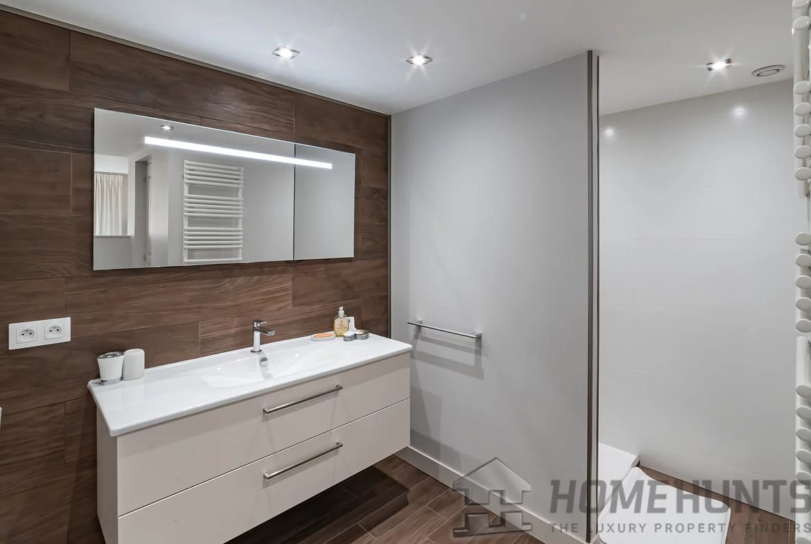 The lower level features a wellness area with sauna, an en suite bedroom and a wine cellar.