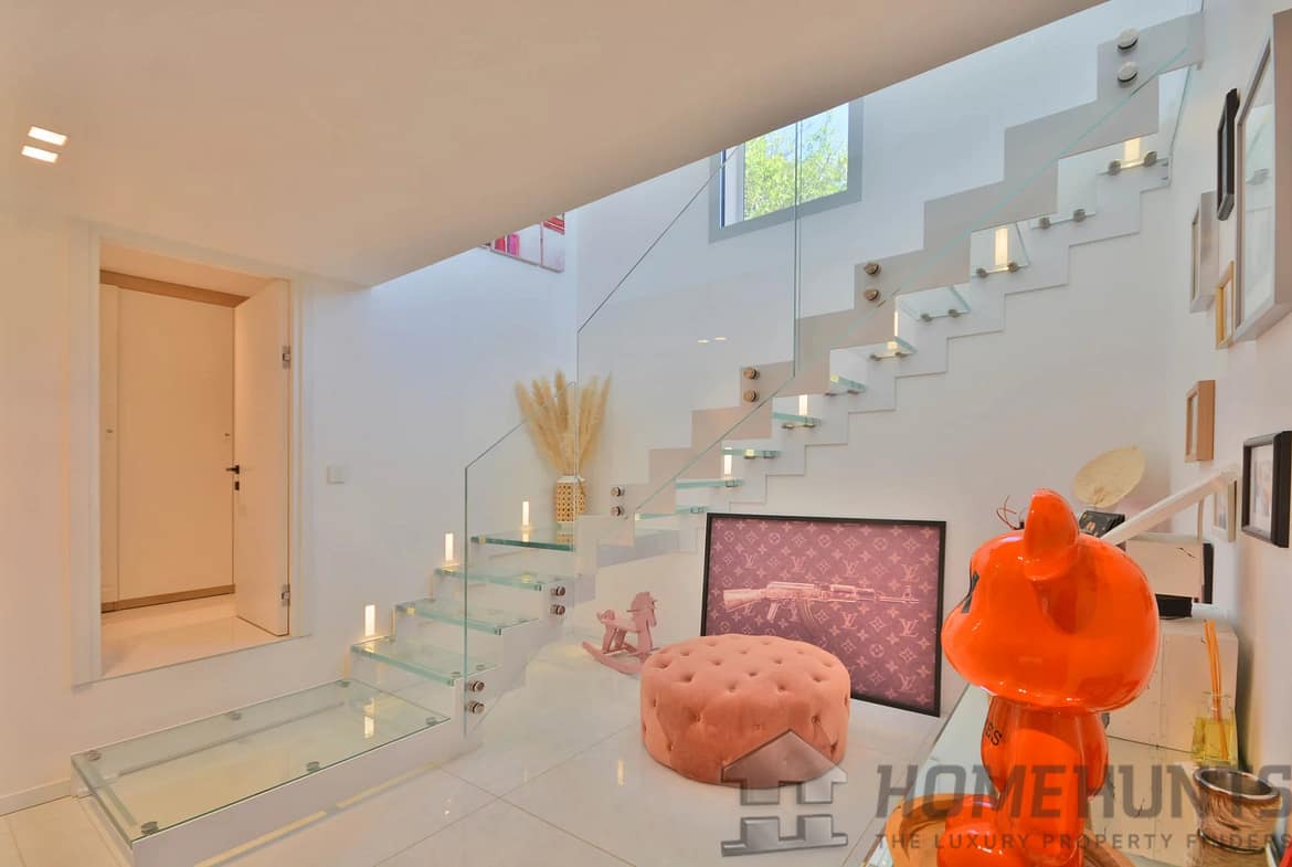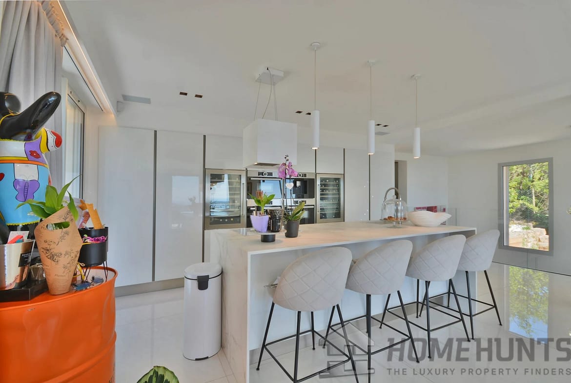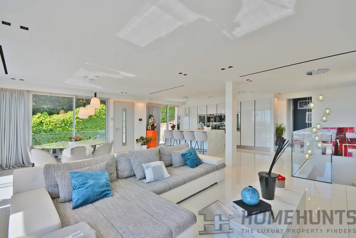 Inside its well appointed interiors, entrance hall, large and bright living room with fireplace, dining room, open plan fitted kitchen, storeroom and laundry room, 4 bedrooms including a spacious master suite with dressing room, 3 bathrooms.