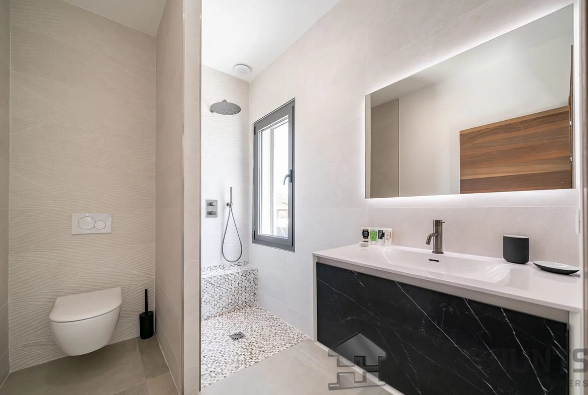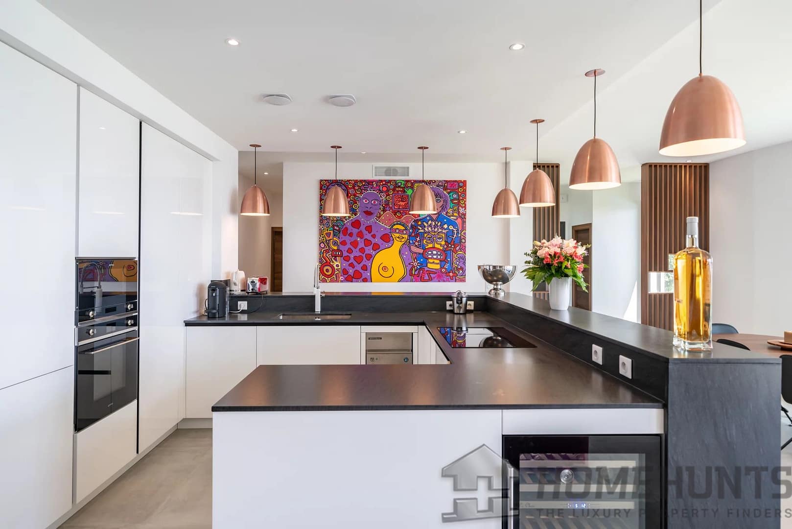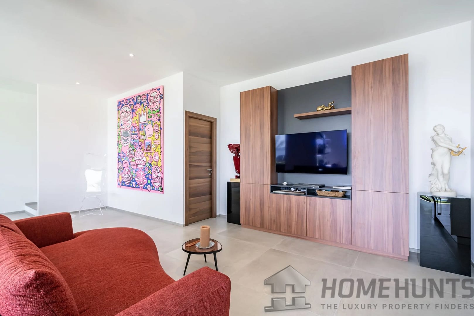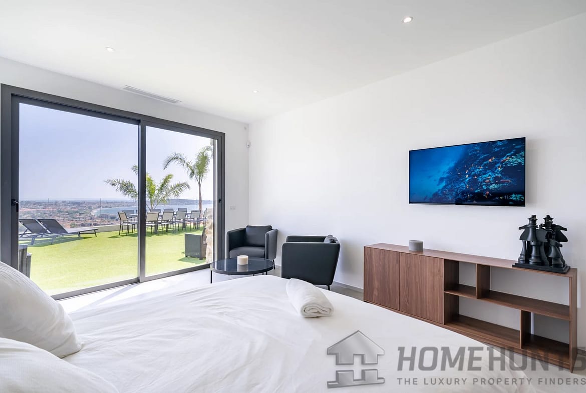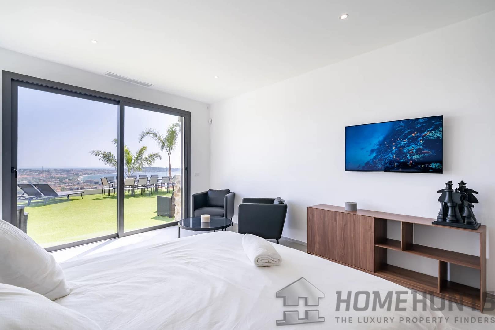 Designed for refined living and entertaining, the villa boasts a light-filled living room opening onto a vast sea-view terrace, an elegant dining area, and a fully equipped open-plan kitchen with premium finishes.