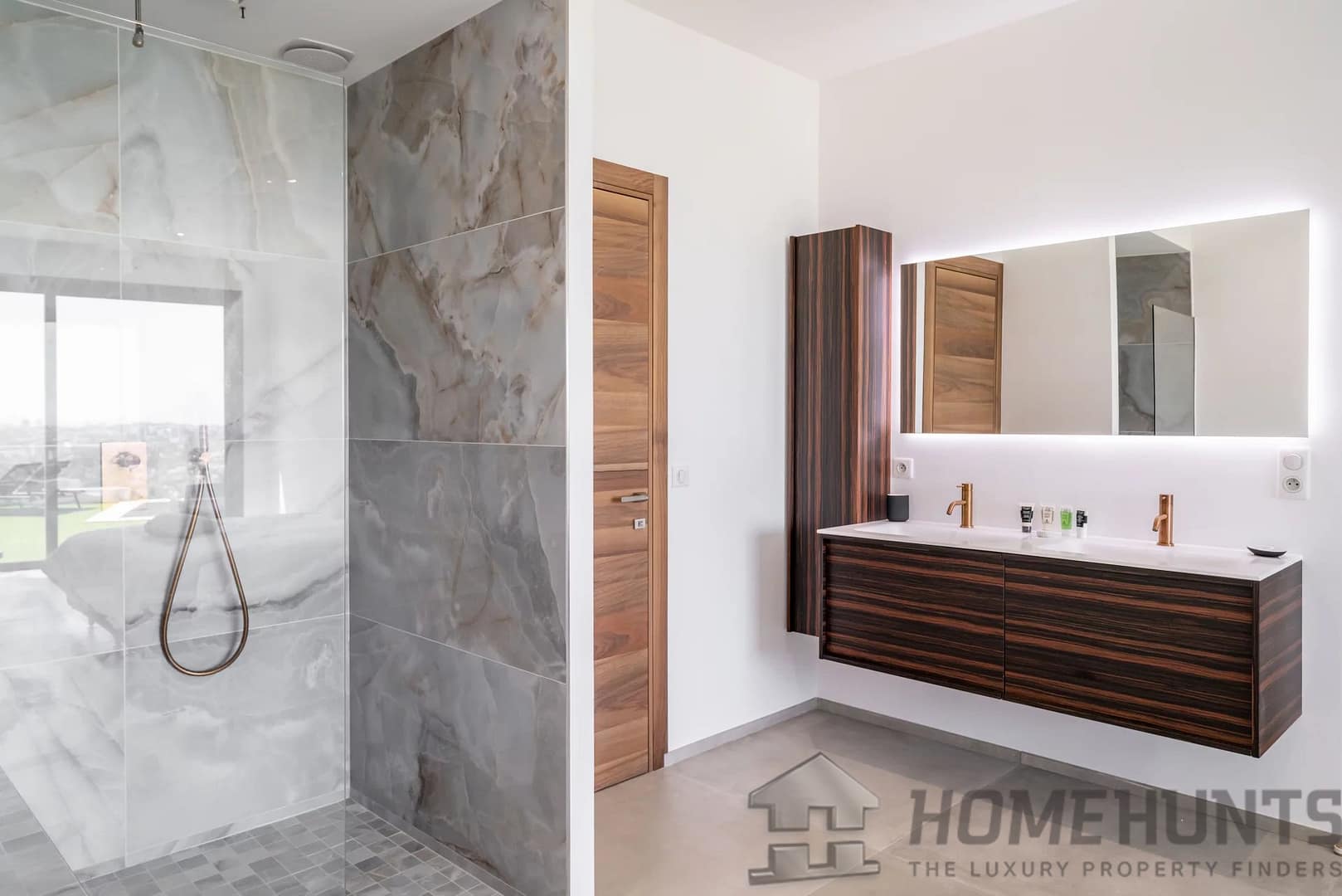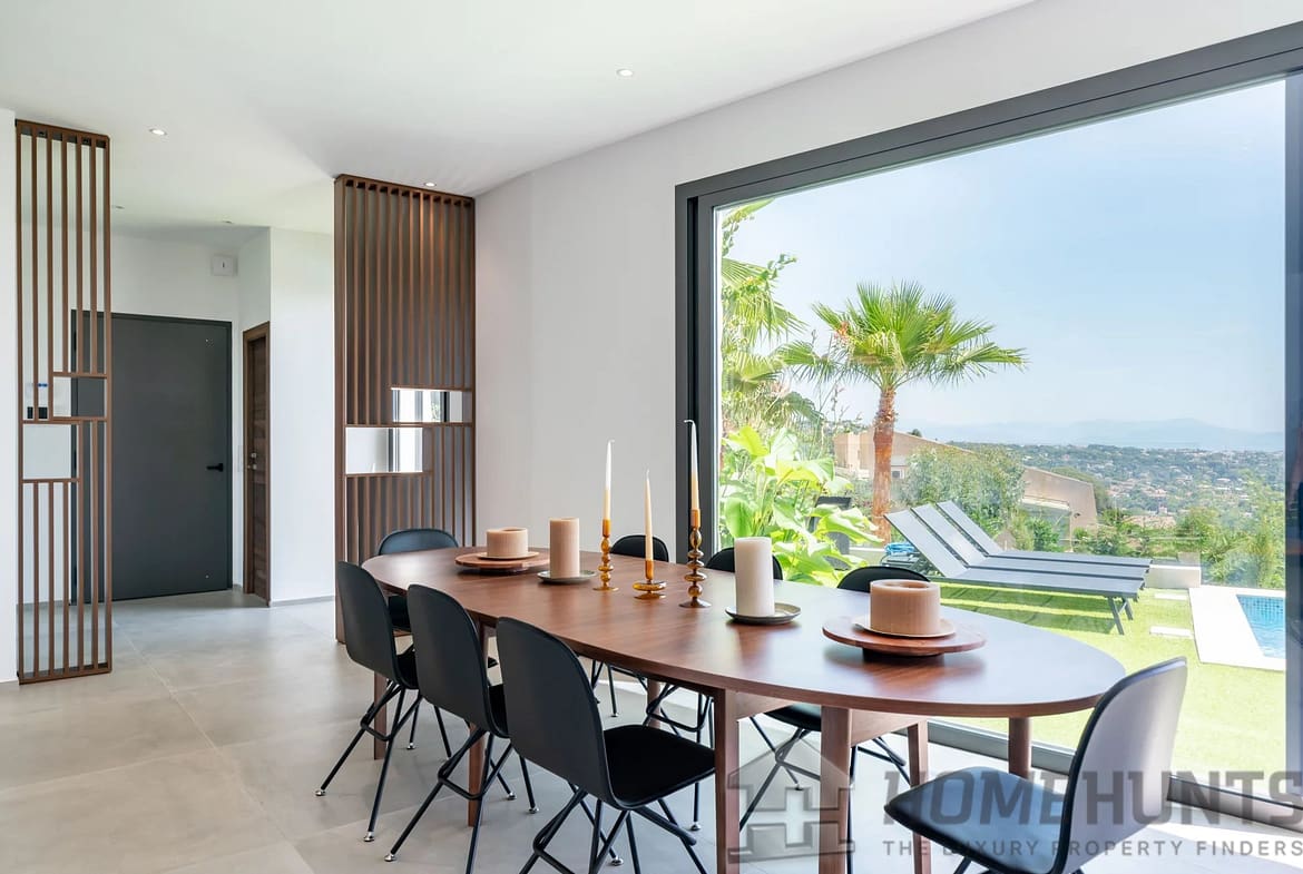 Perched on the heights of Golfe Juan, in a tranquil and prestigious residential neighbourhood, this brand-new contemporary villa of approximately 310 m2 offers panoramic views over the bay and all the way to Cap d’Antibes.