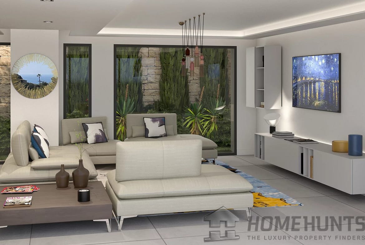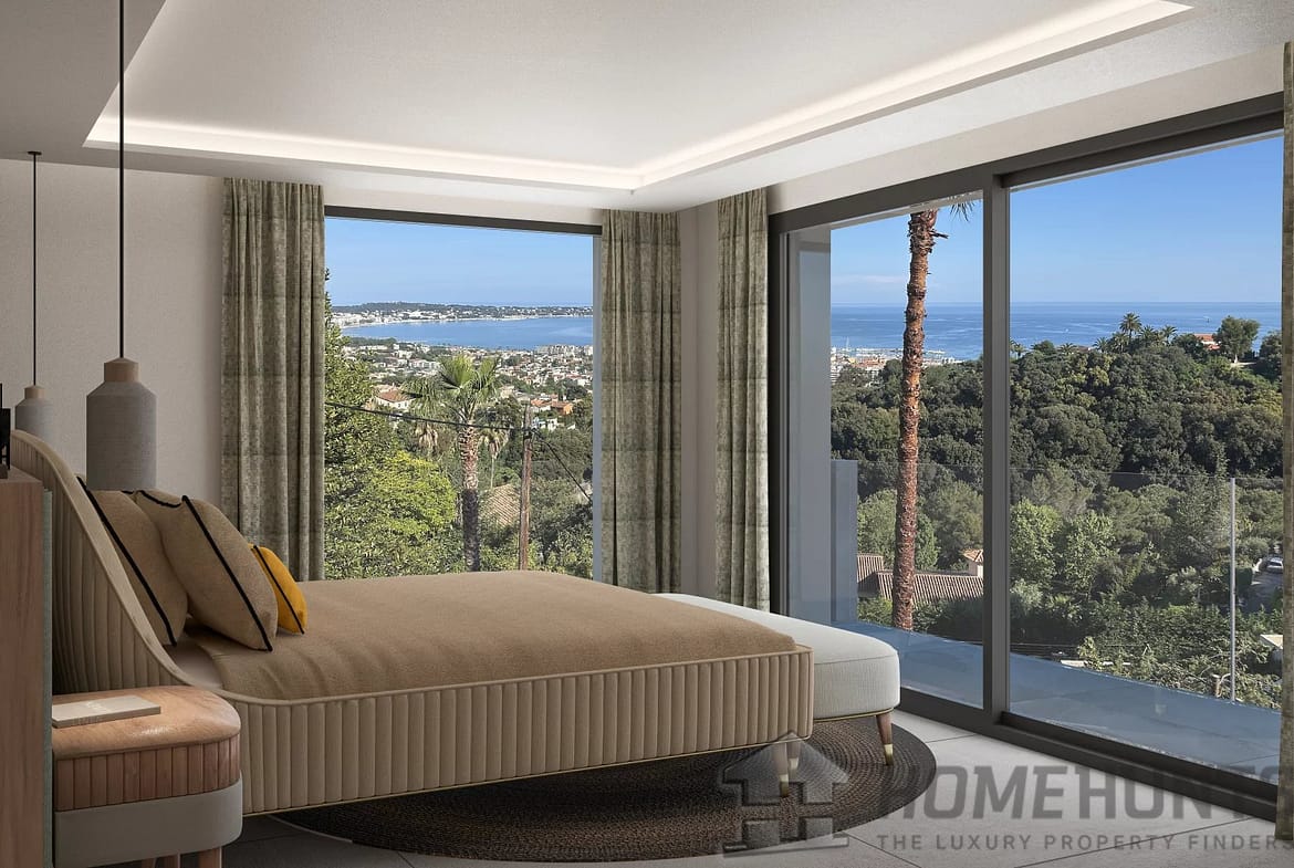 On the residential hillside of Golfe-Juan, with panoramic sea views, this stunning contemporary flat-roof architect-designed villa offers 245 m2 of living space and a south-facing orientation.