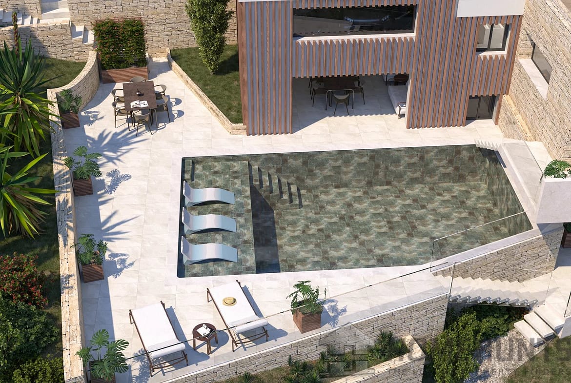 Set on a 1,500m2 plot, the property also includes a swimming pool, a pool house with shower and WC, a garage, and several parking spaces.