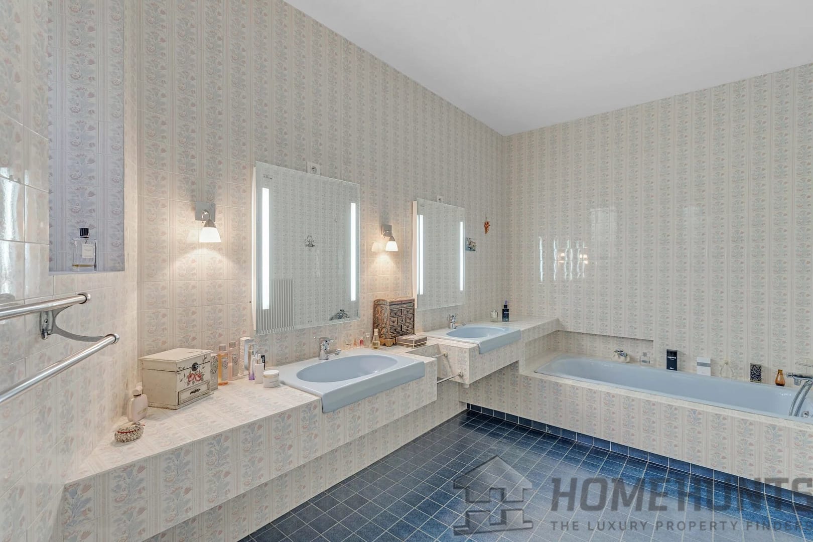 The swimming pool boasts panoramic sea views, and the large terrace (partly covered) is bathed in sunlight while also offering the cool comfort of soothing shade. A summer kitchen and bar area complete this secluded outdoor living space.