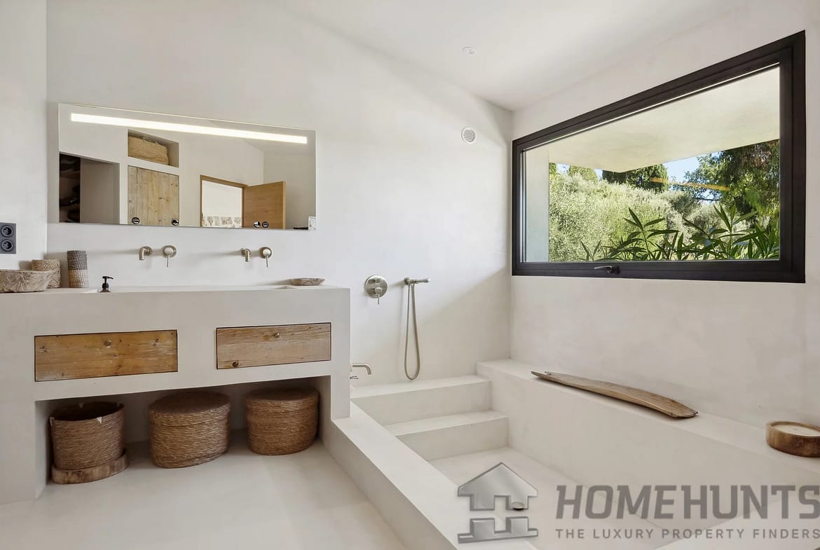 Designed with contemporary architecture and Mykonos-inspired decor, this property captures the essence of Mediterranean luxury. The beautifully landscaped grounds feature around sixty mature olive trees, creating a tranquil oasis with plenty of private corners for relaxation.