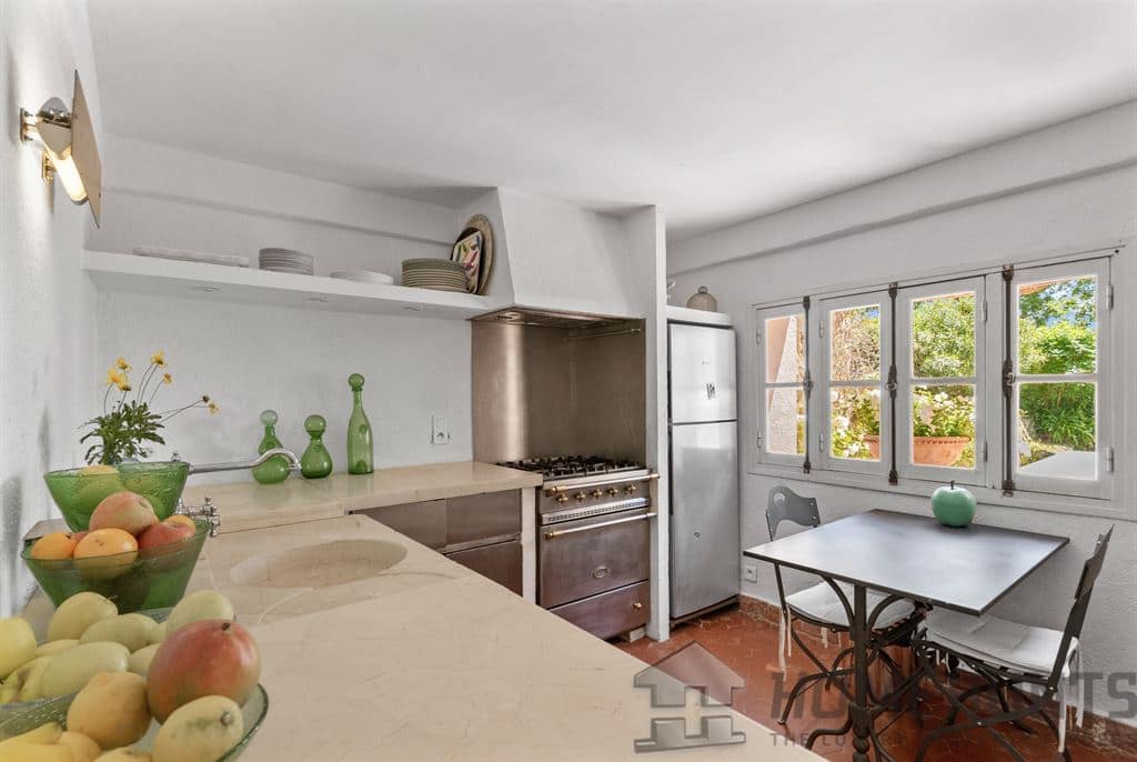 The main house comprises, on the ground floor: an entrance hall, living room with fireplace, dining room overlooking the hinterland, kitchen, and master bedroom. A shaded, private terrace with a stone oven is ideal for outdoor dining.