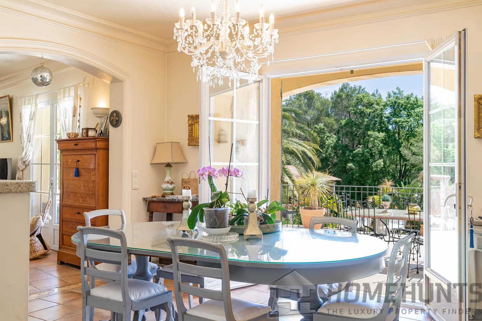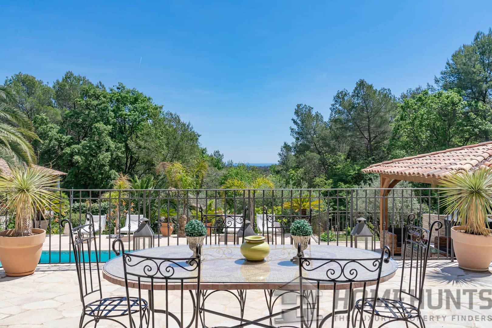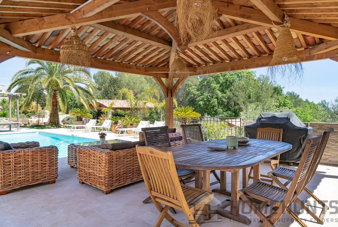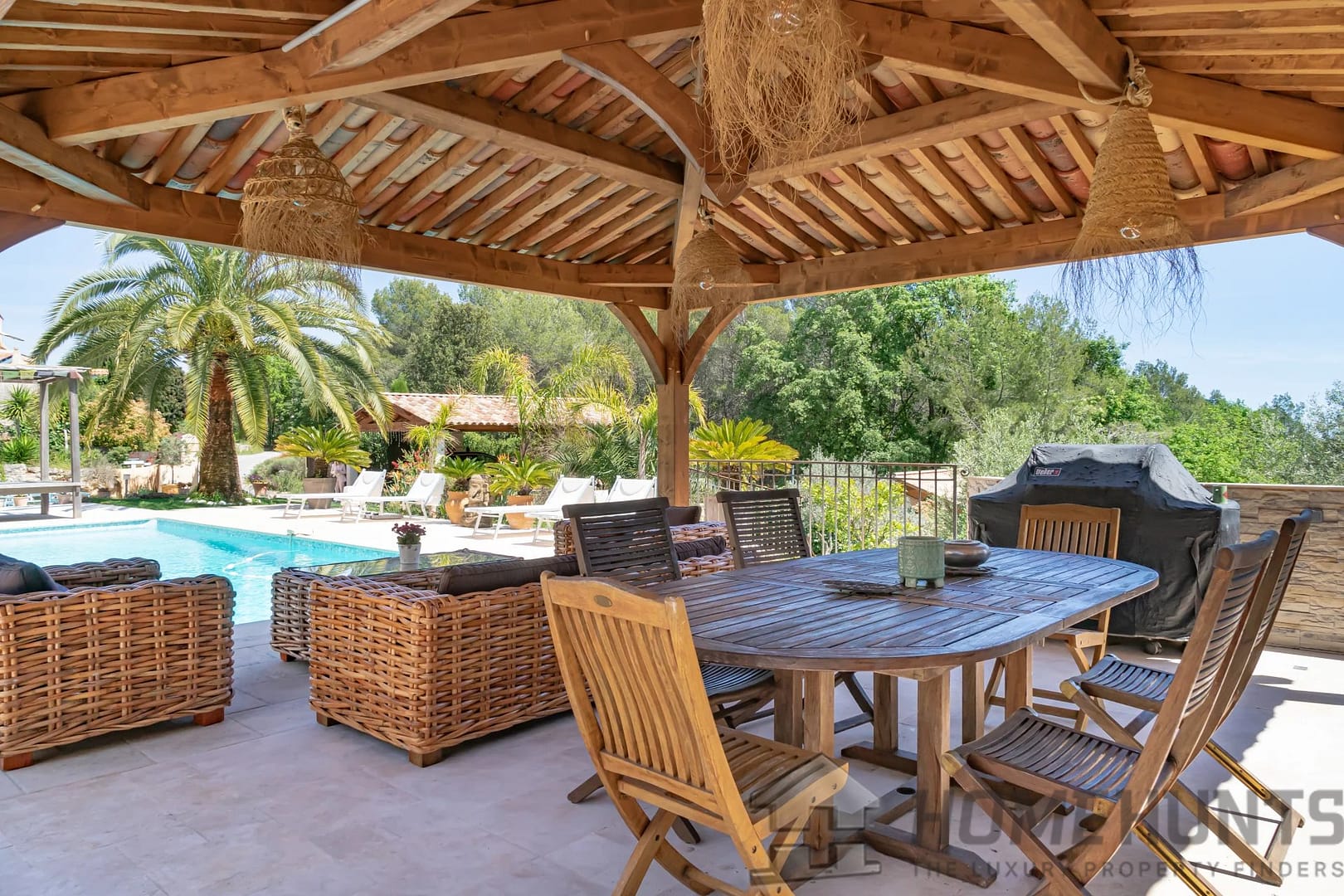 Nestled at the end of a private road, out of sight and in absolute peace and quiet, this elegant 260 m2 Provencal house, set in 2,500 m2 of grounds with swimming pool, welcomes you to a rare and privileged setting, on the edge of the forest, while offering a partial view of the sea from every angle.
