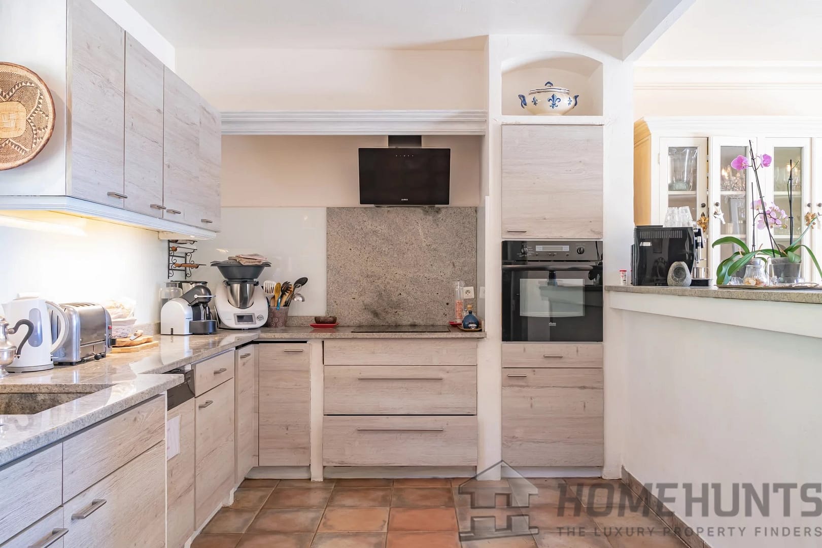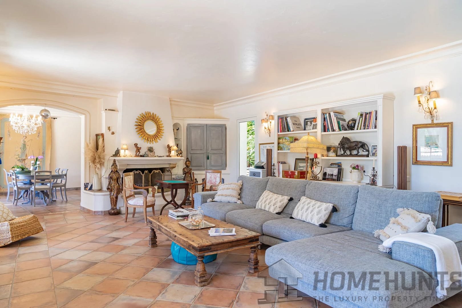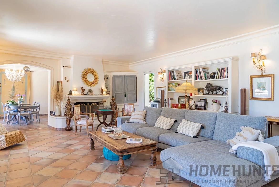Perfectly designed for family life, this authentic Provencal-style villa offers optimal organization of space. Push open the door and a generous living area invites you to discover a warm living room with stone fireplace, a convivial dining room as an extension, as well as a modern, fully-equipped open kitchen, complemented by a laundry room.