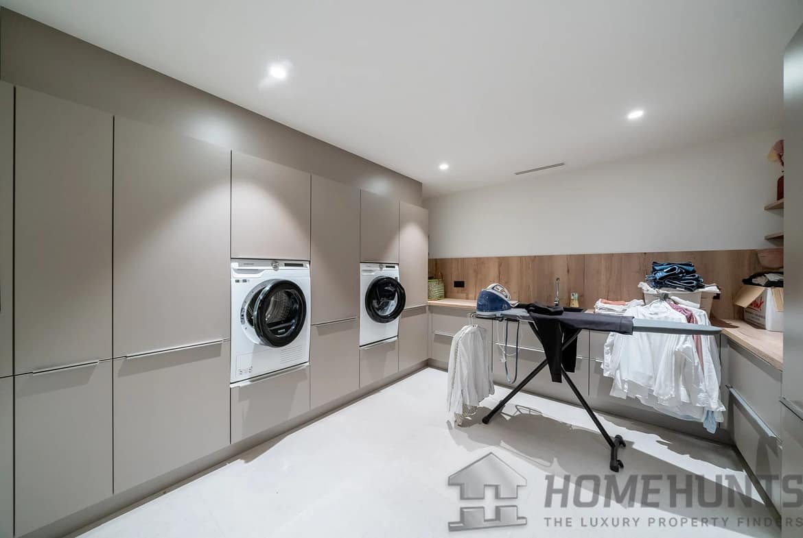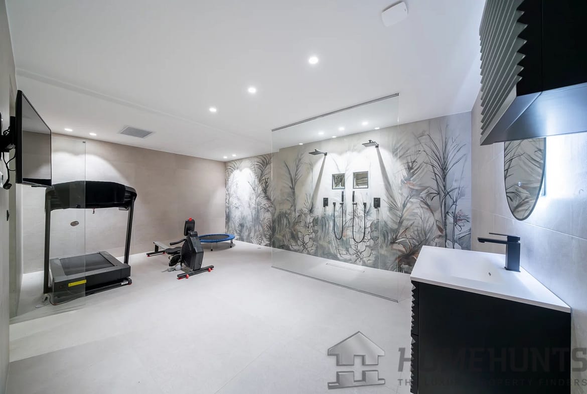 Basement: A laundry room, a cinema room, a wellness area with showers, gym, and hammam.