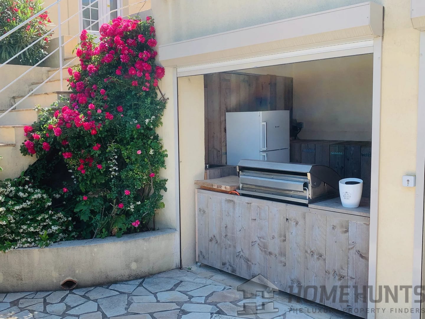 Accommodation : Entrance hall, living room onto the terrace with sea view, fully fitted kitchen, 2 bedrooms and a shower room. 1st floor the master bedroom with its bathroom and terrace. under the house on the lower garden level an independent apartment with its kitchen and shower and toilet, there is a BBQ pool house, easy parking and good summer rental income. The property is fitted with reversible air conditioning.
