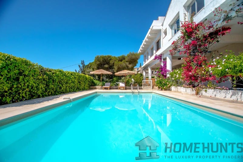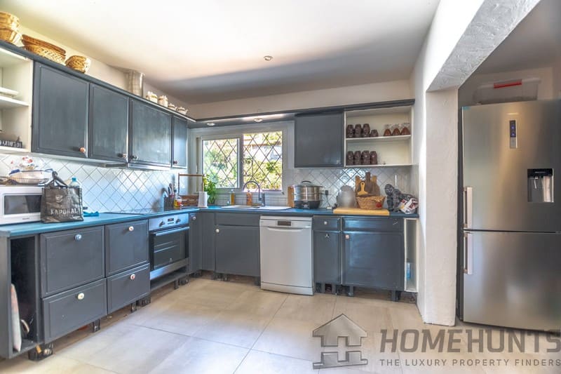 It sits on a 1252 m2 landscaped plot decorated with salt water pool, pool house, 5 terraces, petanque court and plenty of parking enough for 10 cars.