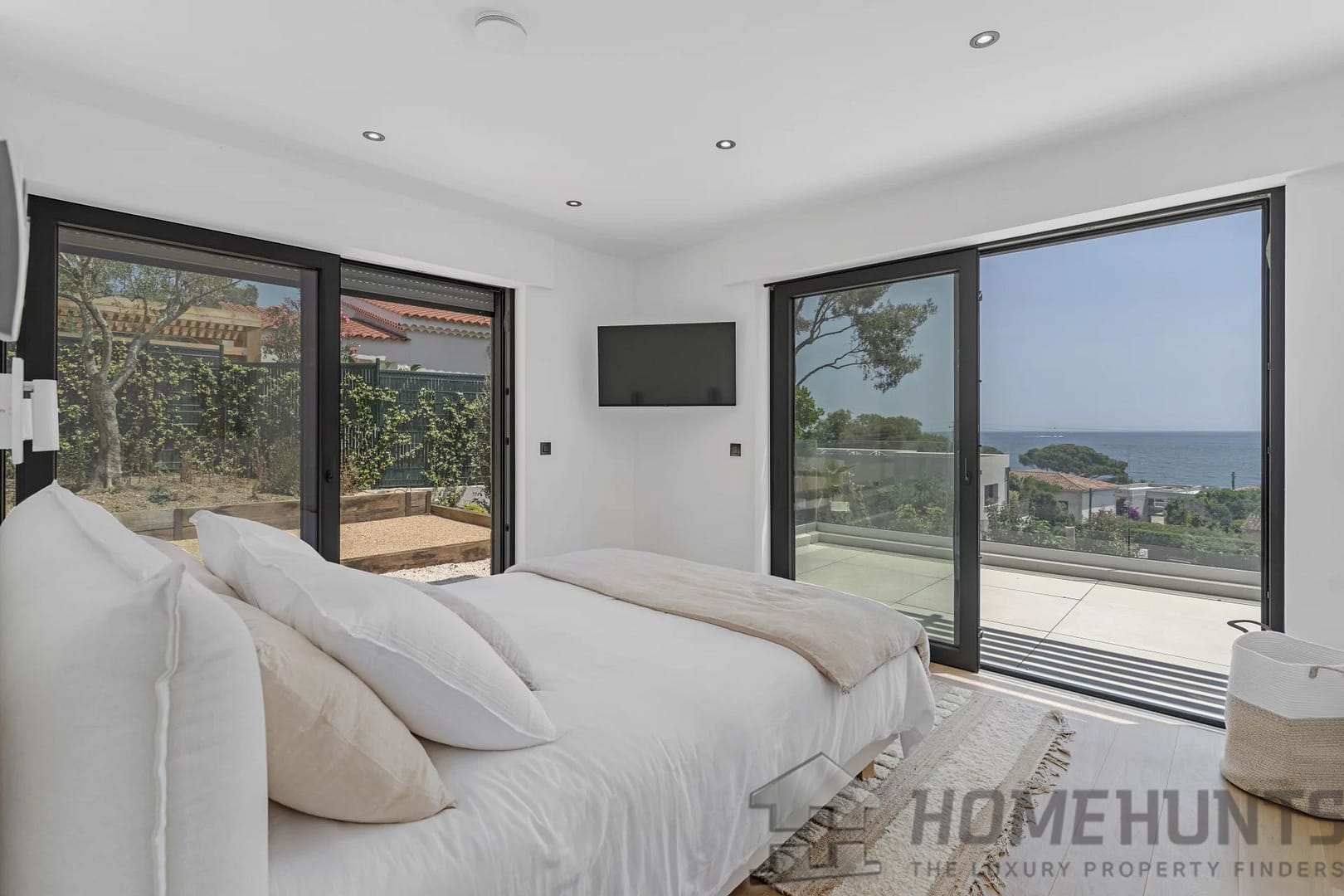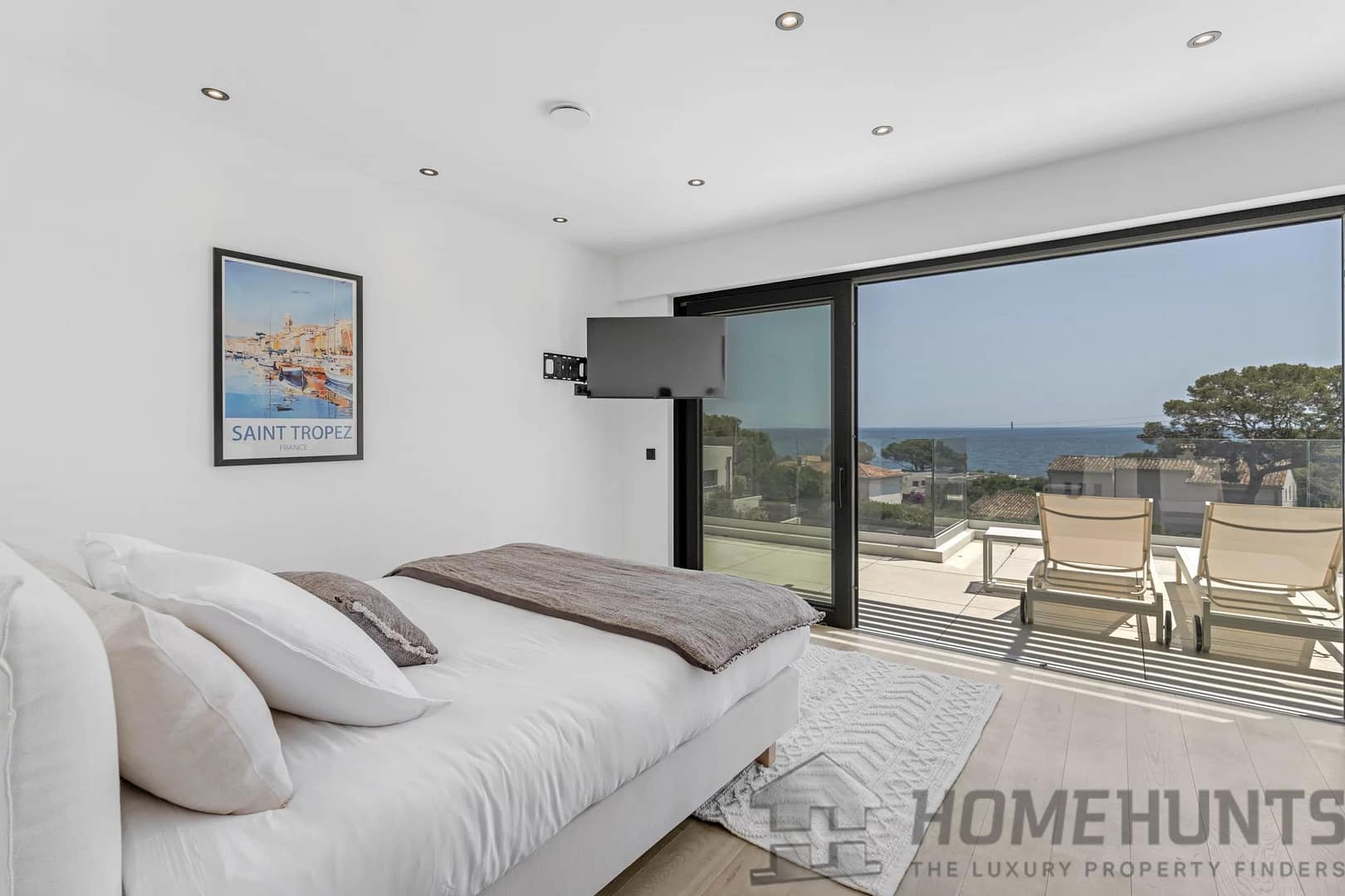 Located in a residential area of Les Issambres, just a short walk from the beach, this brand-new contemporary architect-designed villa offers high-end features and a beautiful sea view.