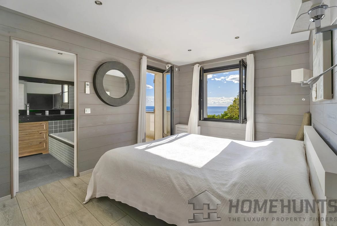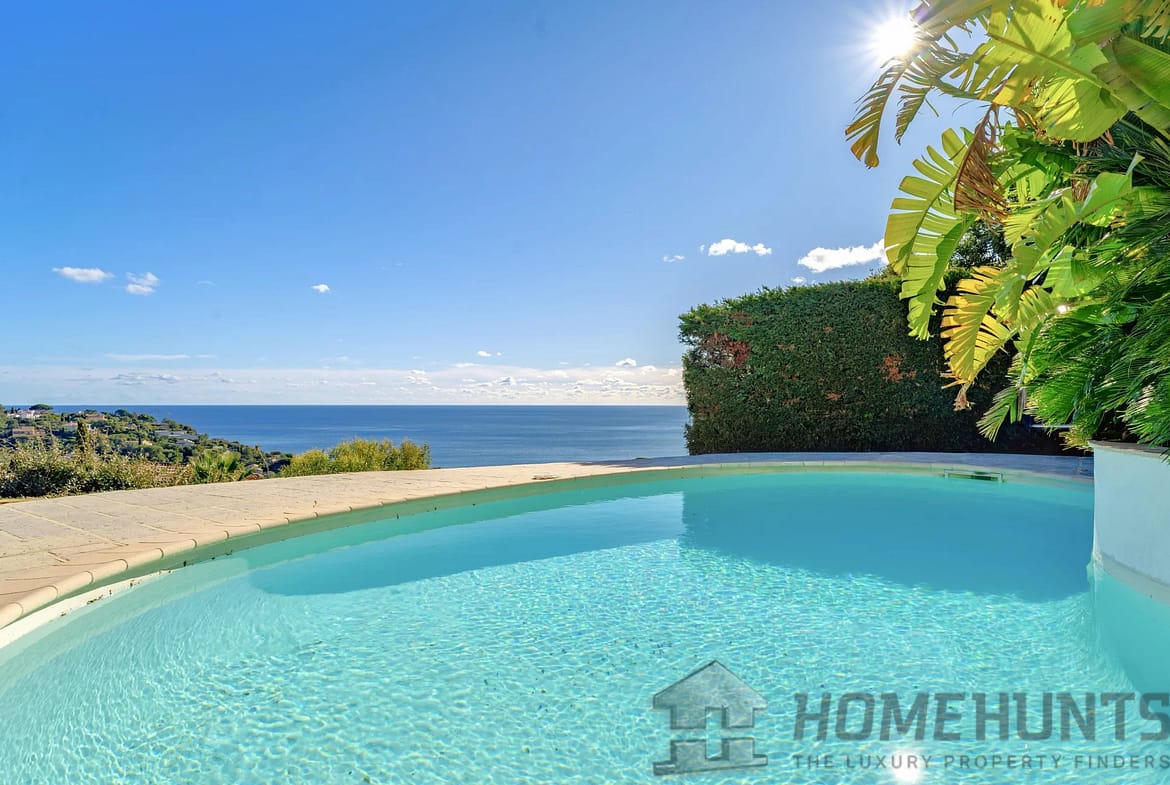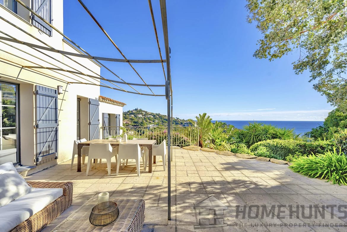 Exceptional renovated villa with panoramic sea views for sale in a prestigious residential area, close to the beach and the village of Les Issambres.
