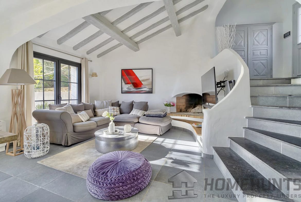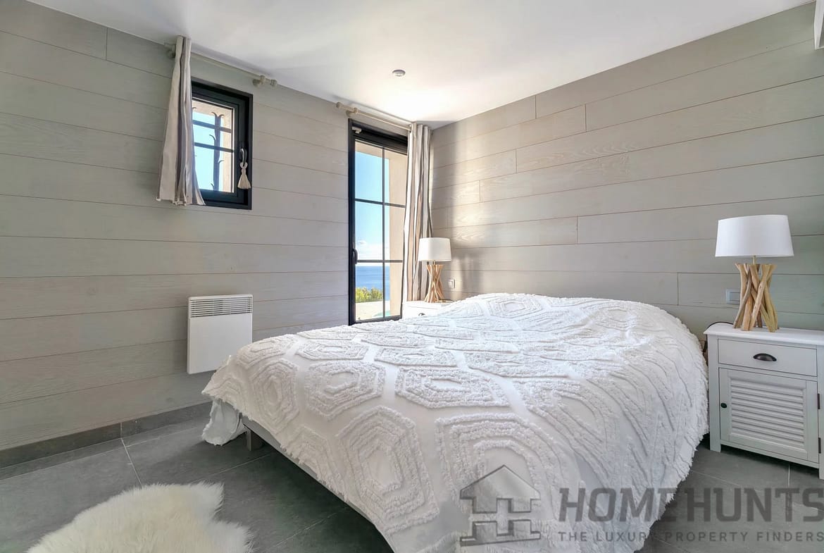 The lower ground floor offers a self-contained two-room apartment, comprising a living area, a fully equipped kitchen, a bedroom, and a shower room with WC, all with direct access to a terrace leading to the heated infinity pool.
