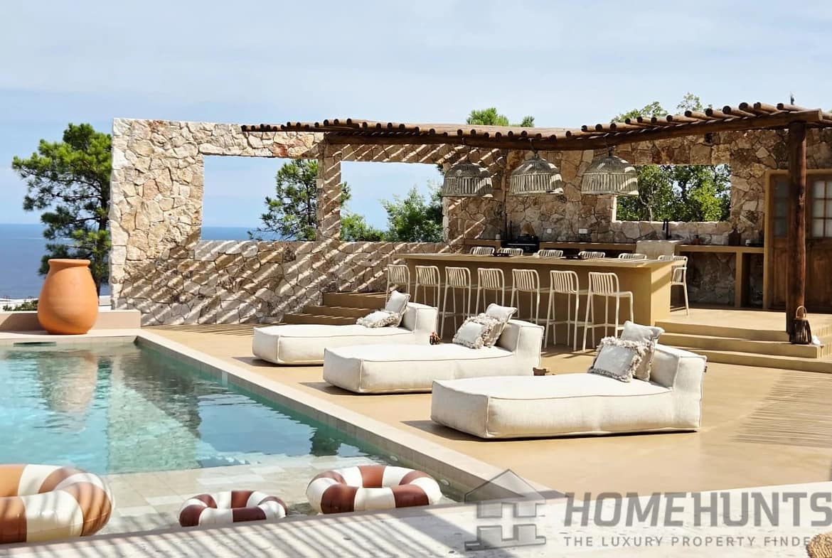 Spread over three levels served by an elevator and offering more than 500 sqm of refined living space, it has been crafted with the finest materials: wood, metal, natural stone, terrazzo-style tiles, and solid wood flooring in all bedrooms. The generous volumes, bathed in natural light, open onto the sea horizon, with a vast living room and a design kitchen extending seamlessly to a spectacular terrace.