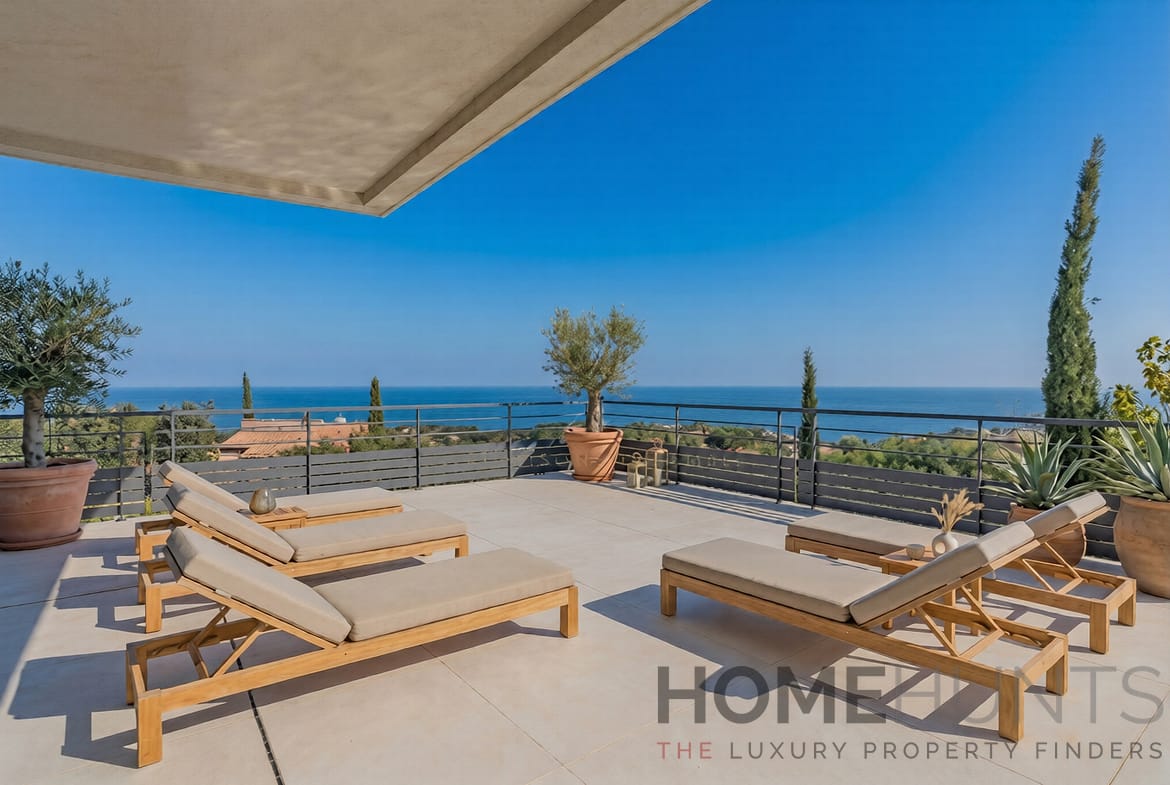Upstairs, five refined en-suite bedrooms, each with terrace access, all enjoy magnificent sea views, providing the perfect setting for hosting guests in complete privacy.