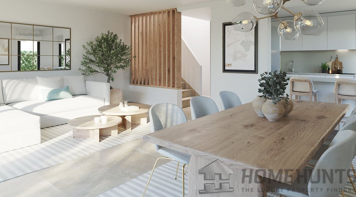 All the dwellings come with a spacious open-plan lounge-dining room with a footage of up to 30 m2. A fully furnished and fitted kitchen, three full bathrooms (one en suite). 3 or 4 bedrooms, according to your requirements. Master bedroom with walk-in closet. Spacious private garden of over 200 m2, private swimming pool, two parking spots.
