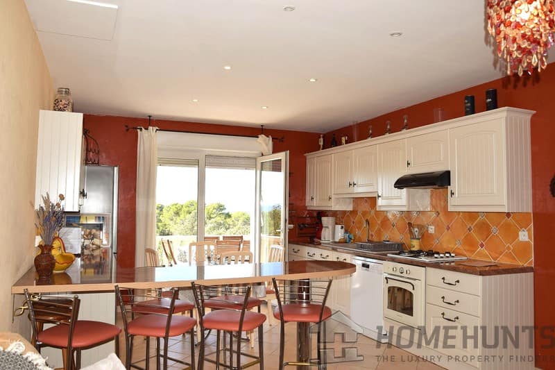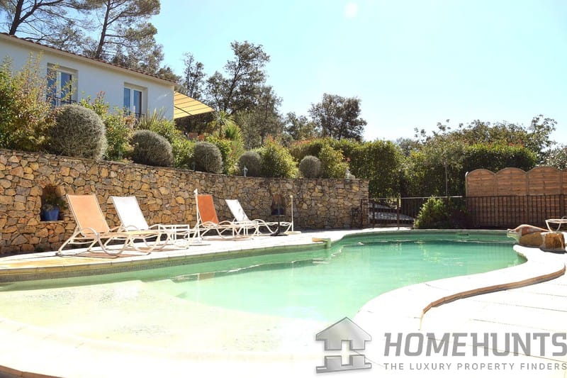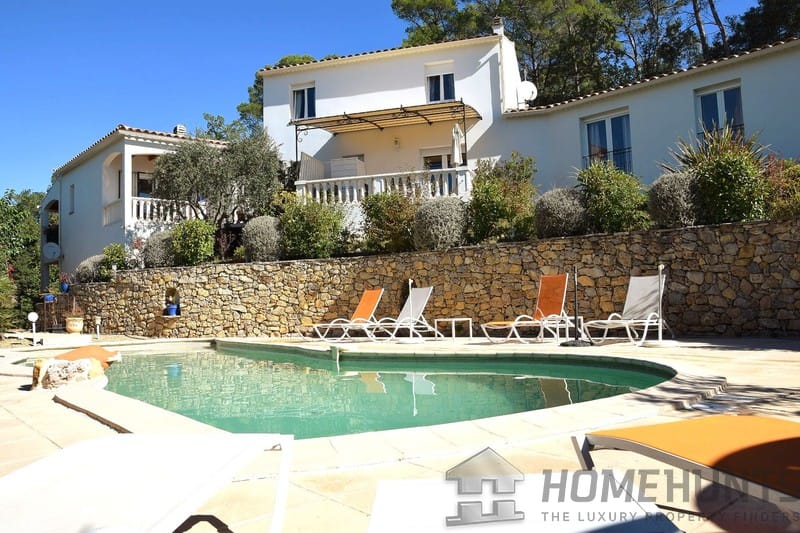 Large villa with 5 independent flats, about 2 km from the centre of the village in a pleasant residential area with swimming pool and panoramic view of the Massif des Maures.