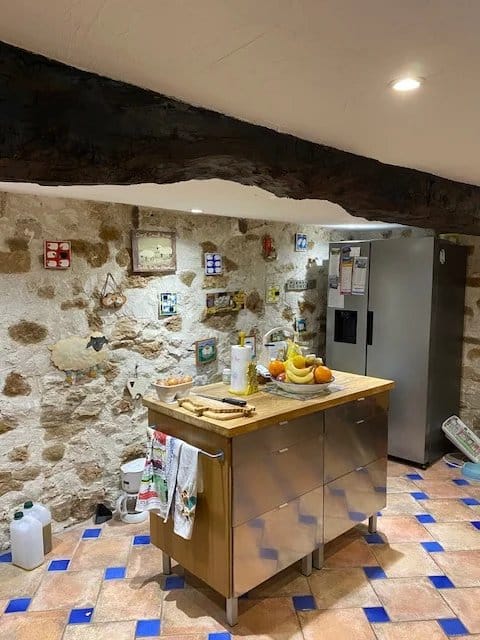 Ideal for a family lovely large living room with fireplace and wooden beams creating character and charm, independent equipped kitchen, and a utility/cellar.