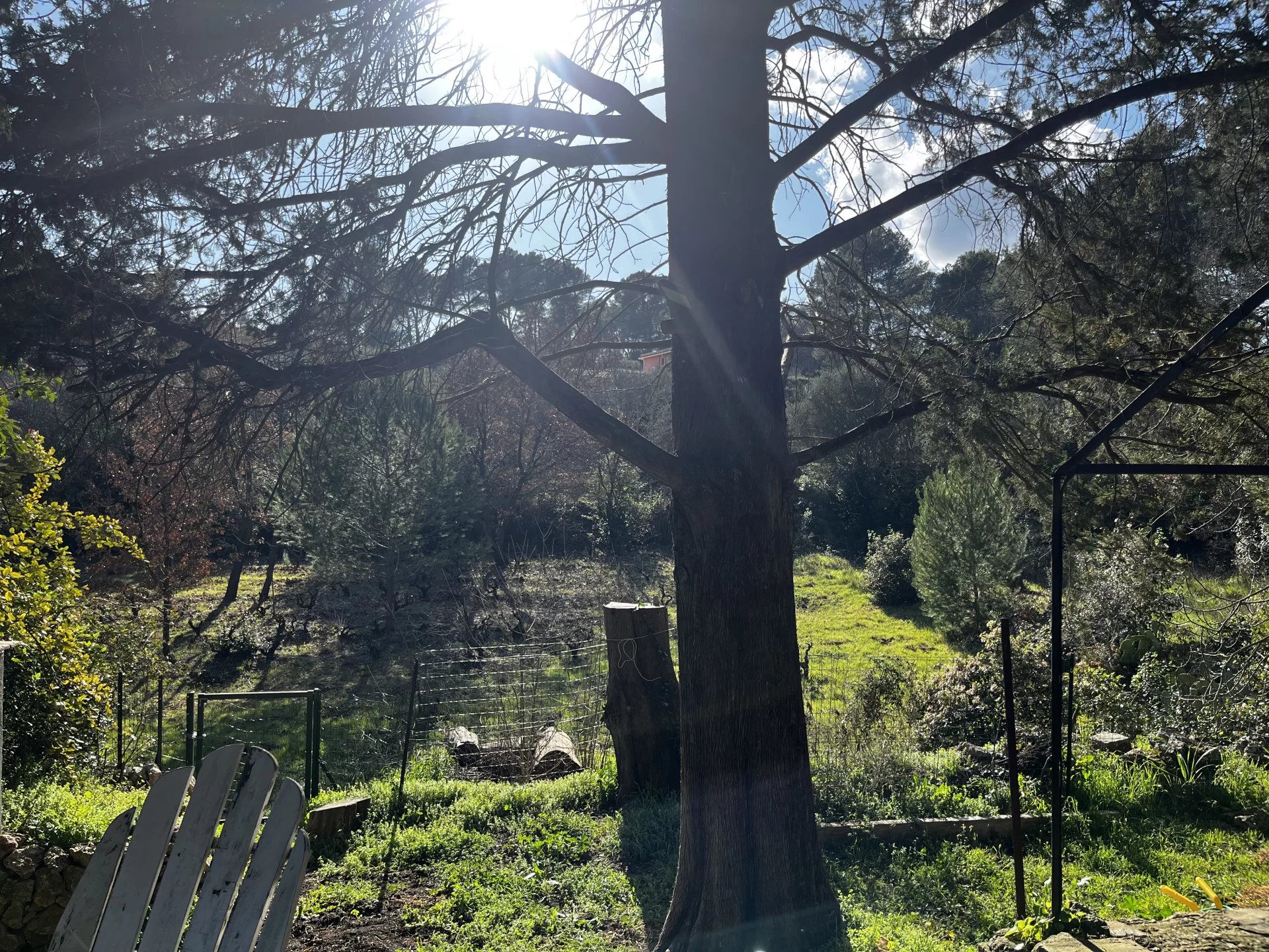 – Stone shed/workshop, multiple parking spaces, and mature Mediterranean vegetation.