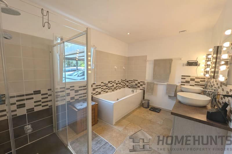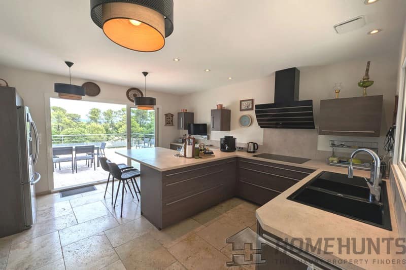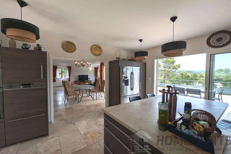 Nestled in the heart of Provence, Lorgues is a charming and vibrant village known for its historic architecture, Provencal markets, and proximity to prestigious vineyards and natural beauty. Just a short stroll from the village centre, in a peaceful and elevated setting, this superb contemporary villa built in 2020 offers modern comfort, expansive views and generous living spaces.