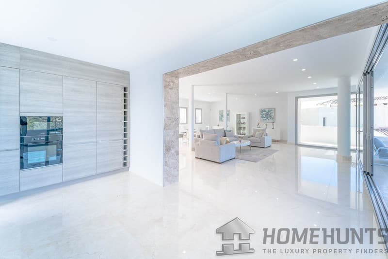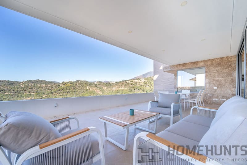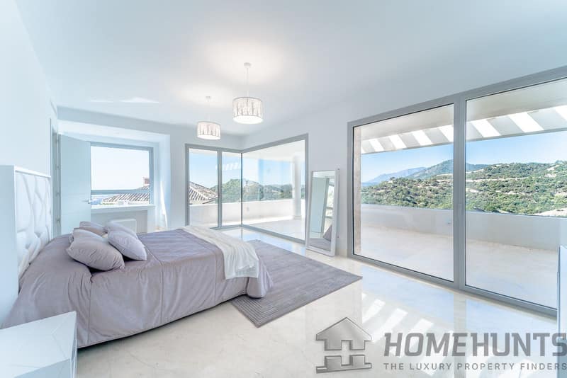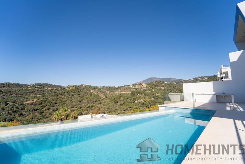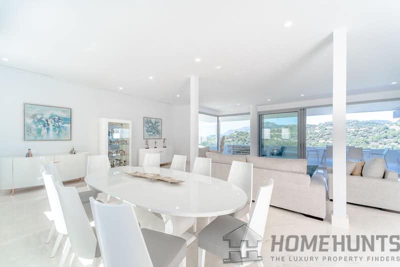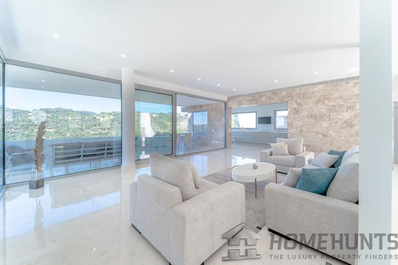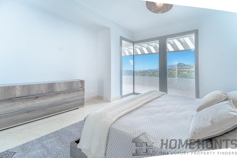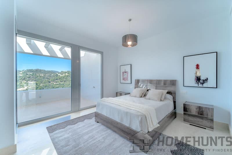 It is located in a natural environment, surrounded by golf and mountain, providing nice open views to those, panoramic sea view from the solarium and good sea view from some areas of the house.