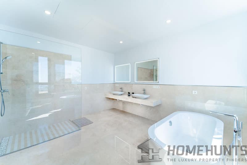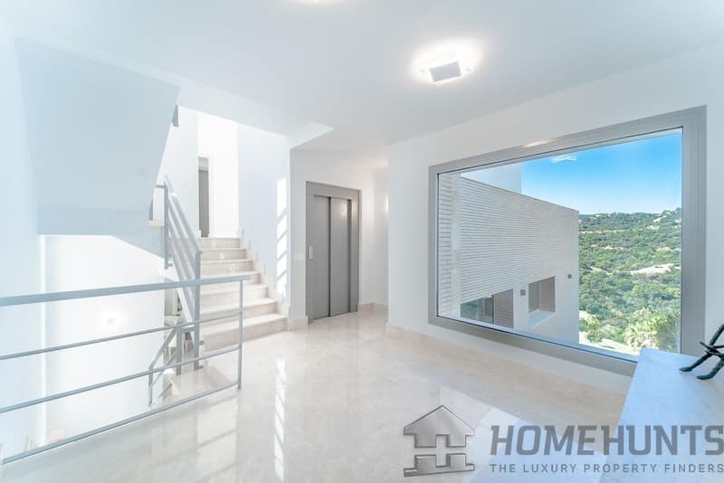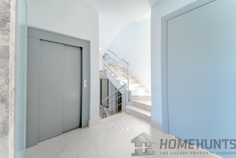Newly built contemporary villa, finished on two floors plus basement, plus roof top, accessible by stairs and elevator.
