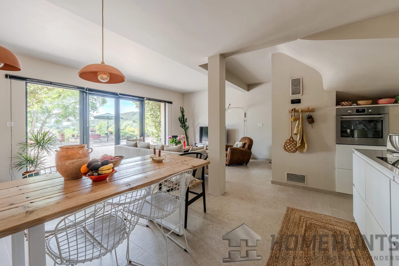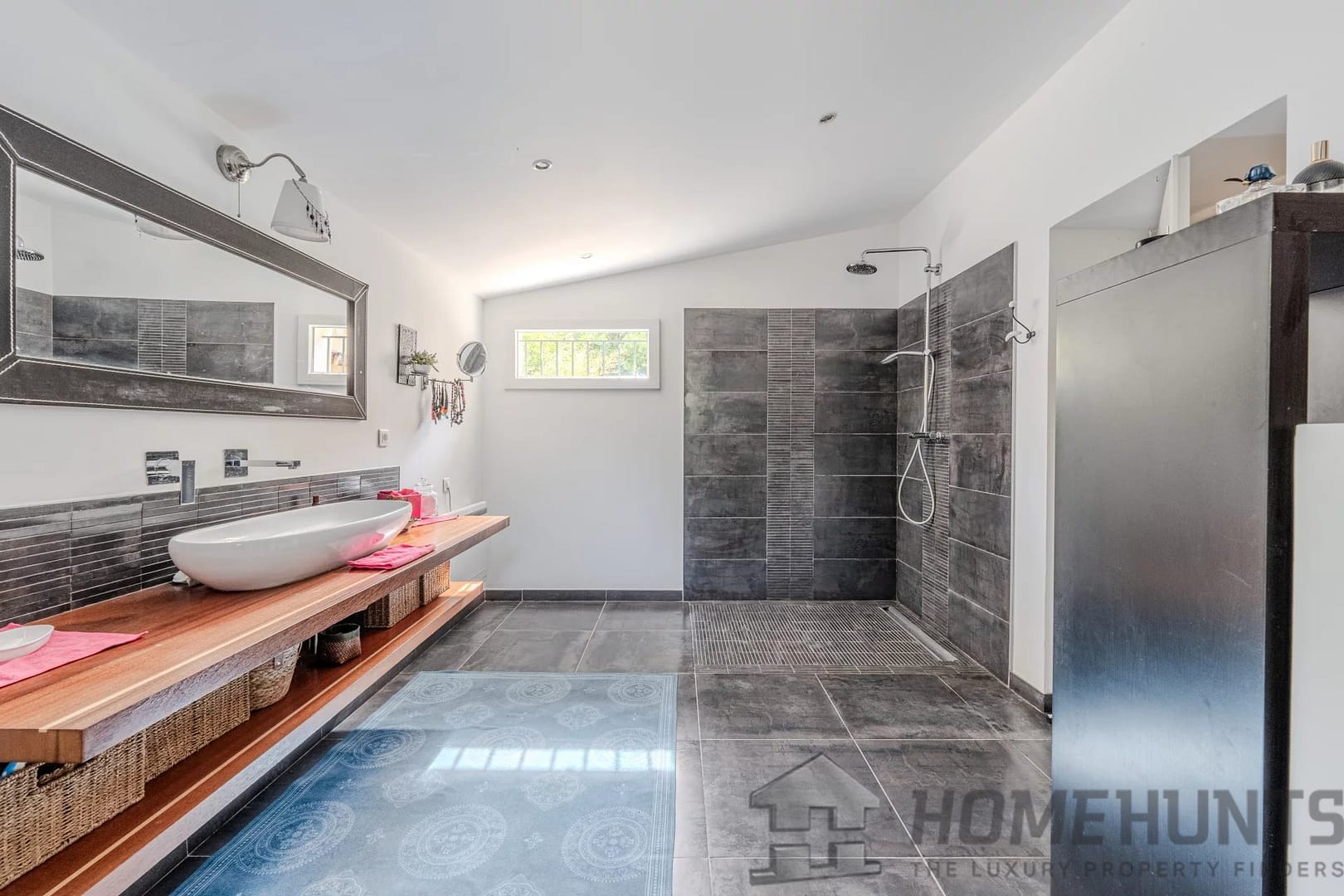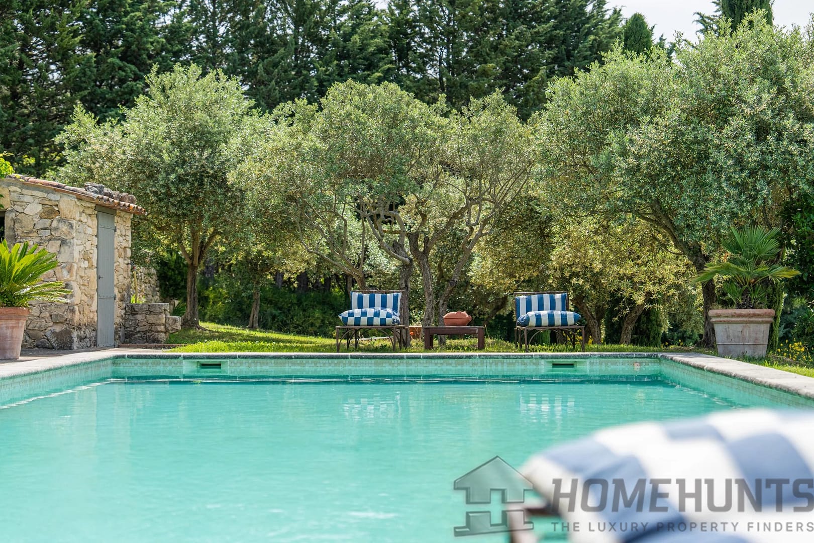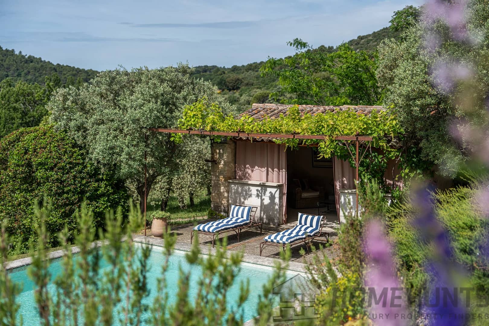 Outside: around a magnificent swimming pool with terrace and pool house extends over several terraces a 1.6 hectare plot of land planted with more than 150 olive trees giving a production of olive oil, The place enjoys ‘a superb view from above over the valley and not overlooked.