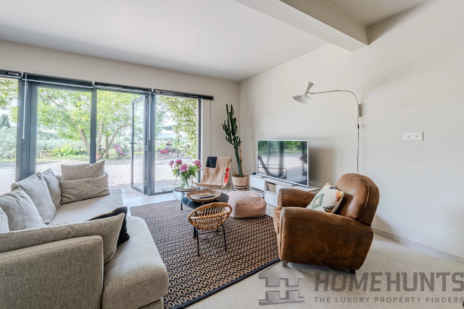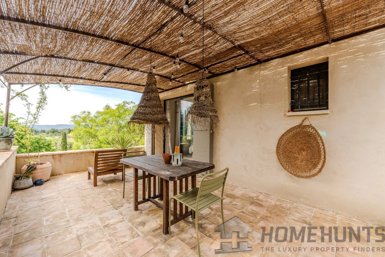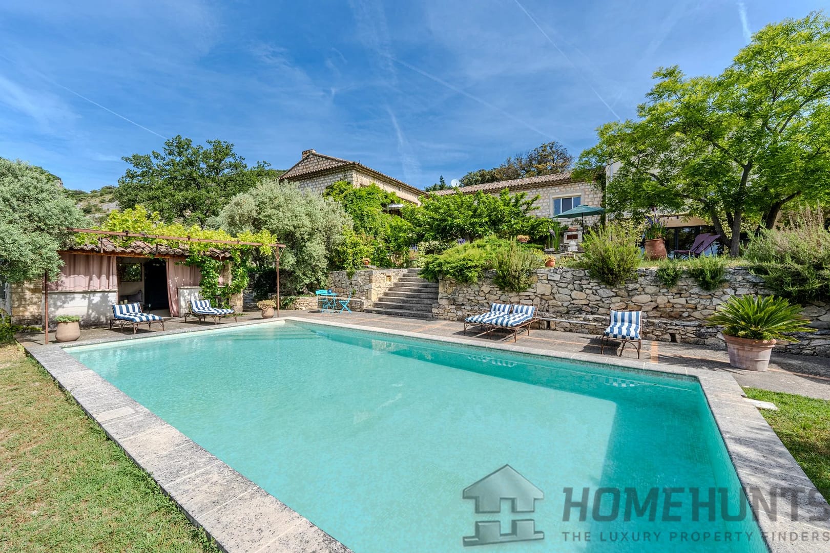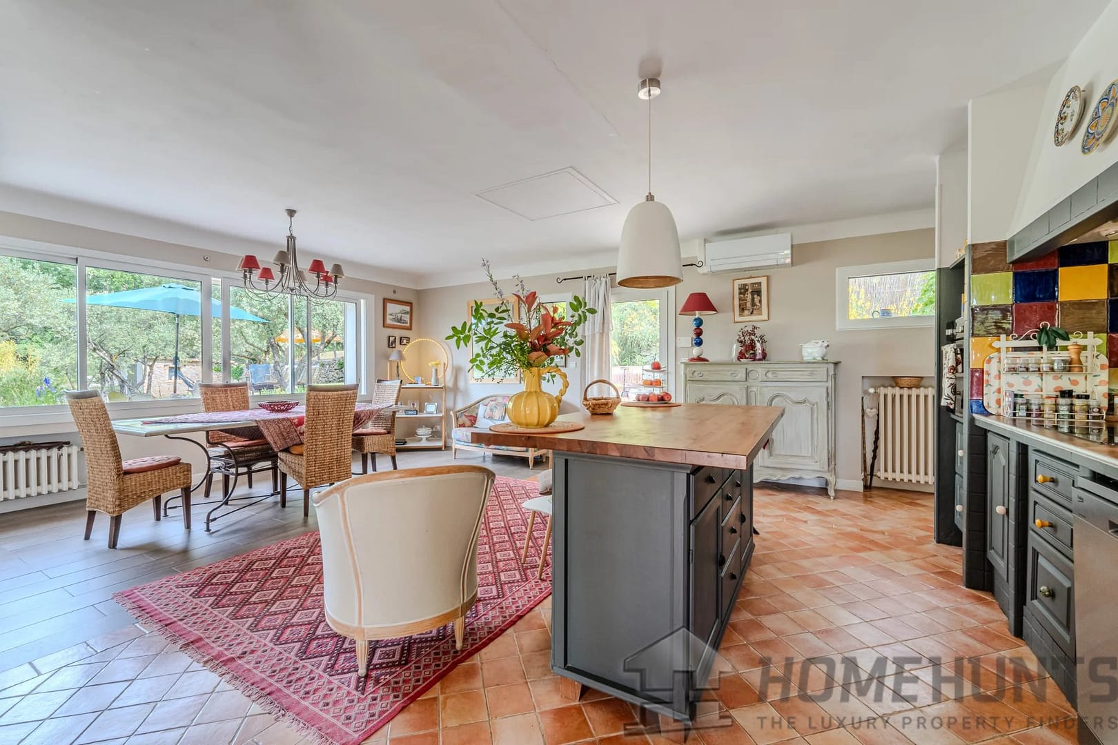 Outside: around a magnificent swimming pool with terrace and pool house extends over several terraces a 1.6 hectare plot of land planted with more than 150 olive trees giving a production of olive oil, The place enjoys ‘a superb view from above over the valley and not overlooked.