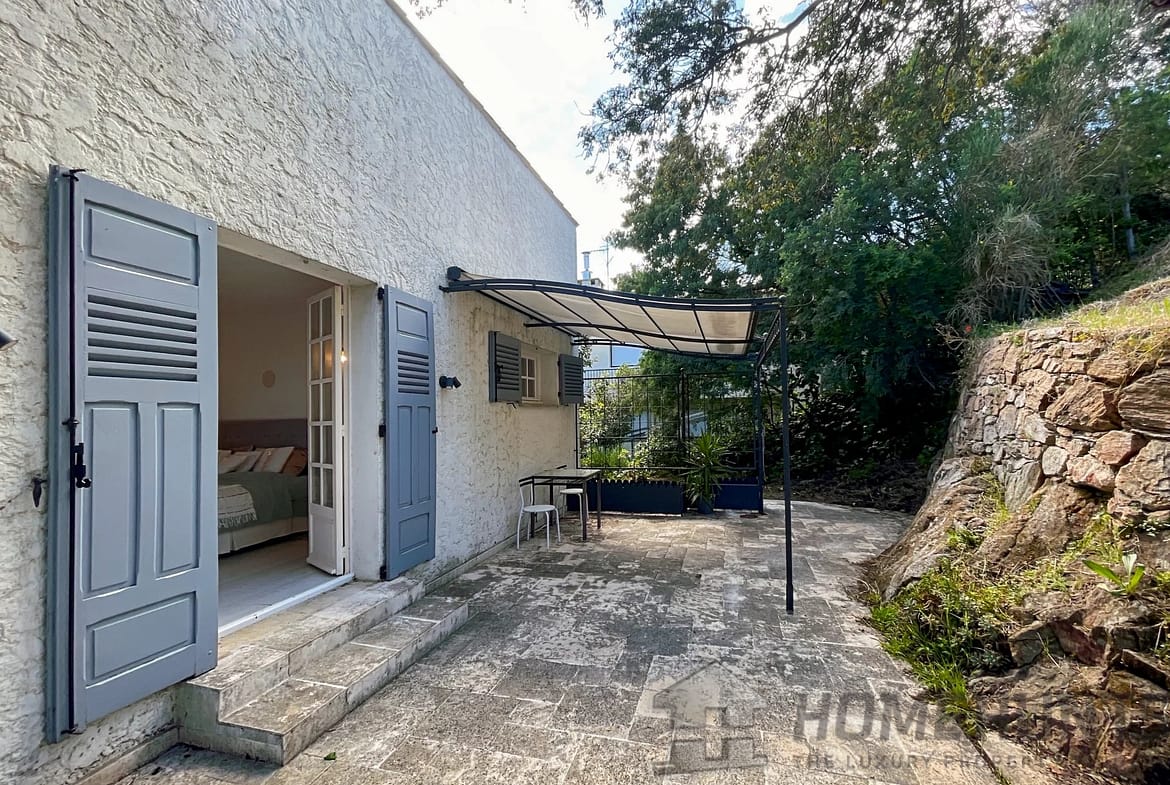The main house features a welcoming entrance that guides visitors inside. The equipped kitchen, open to the living area which is adorned with a fireplace offering a panoramic view of the sea. A spacious terrace allows full enjoyment of the sea view. Guest toilets are available for added convenience, as well as a second space for a lounge/office/home cinema for various uses.