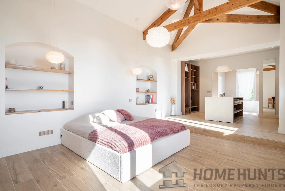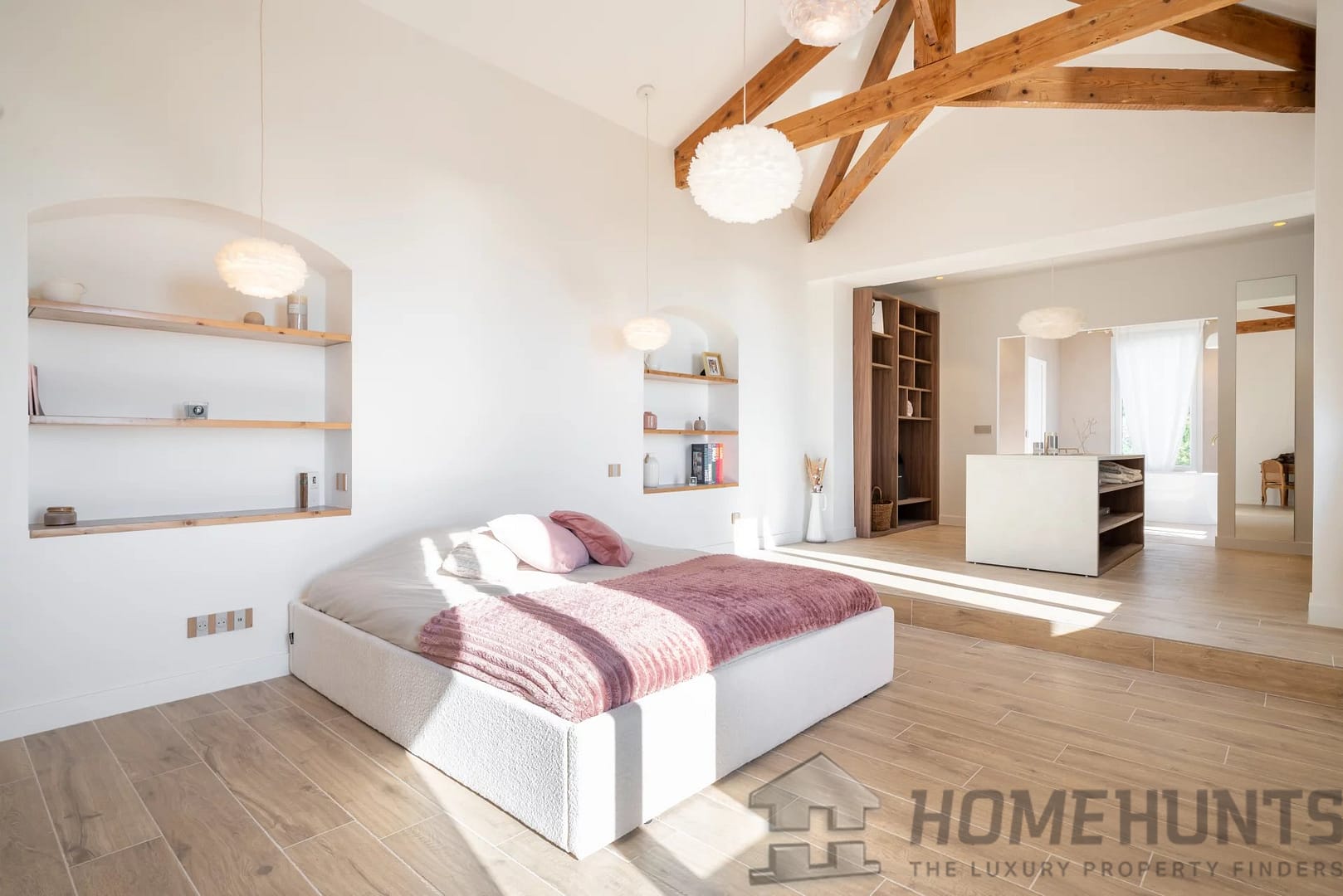 Ground floor: A master bedroom with bathroom and dressing room, an en-suite bedroom with bathroom, an additional bedroom, a shower room, two twin bedrooms with shower rooms, and a laundry room.