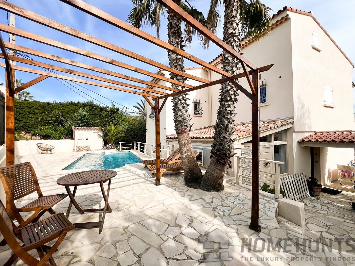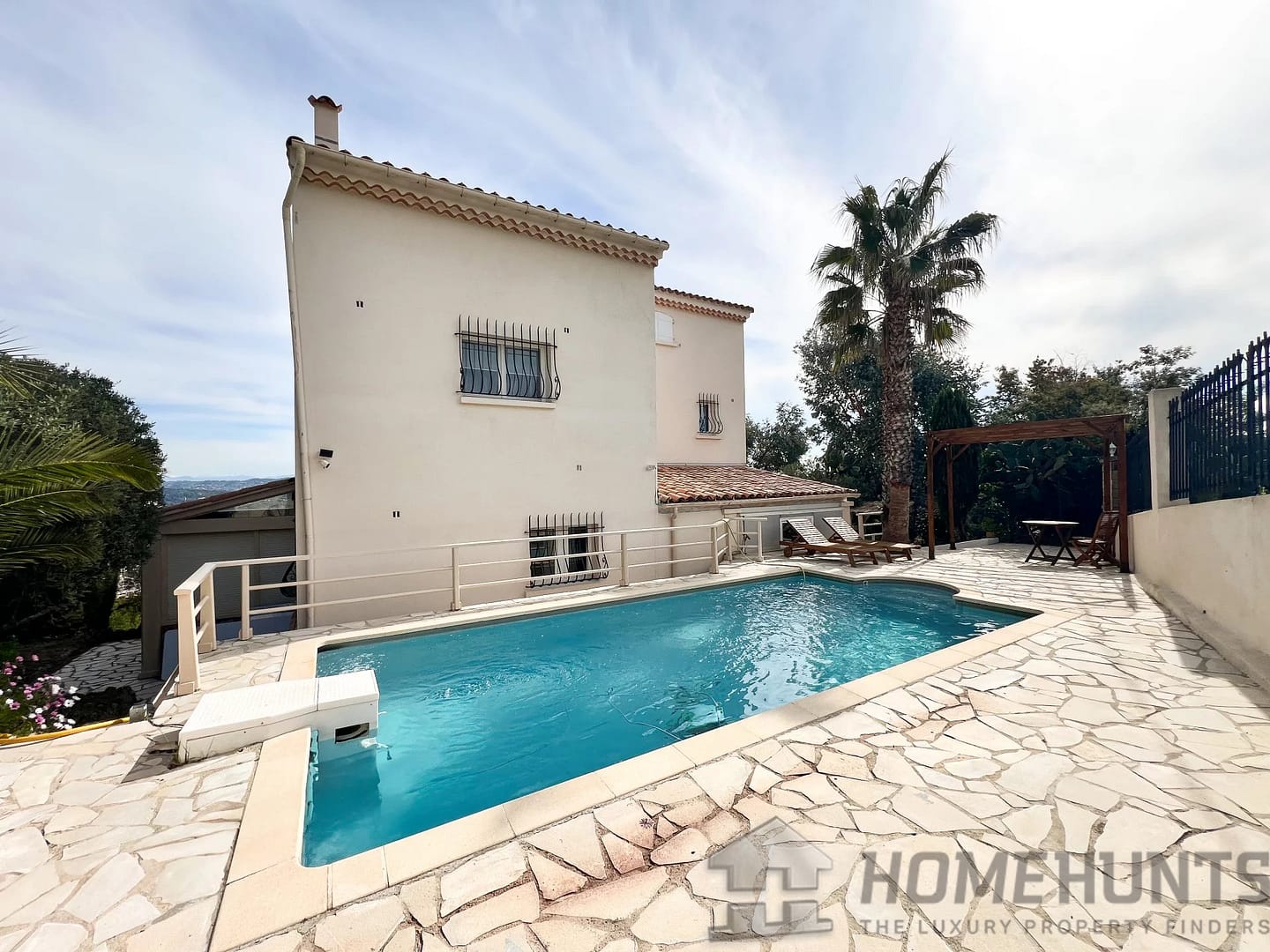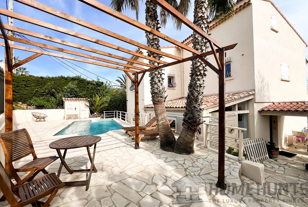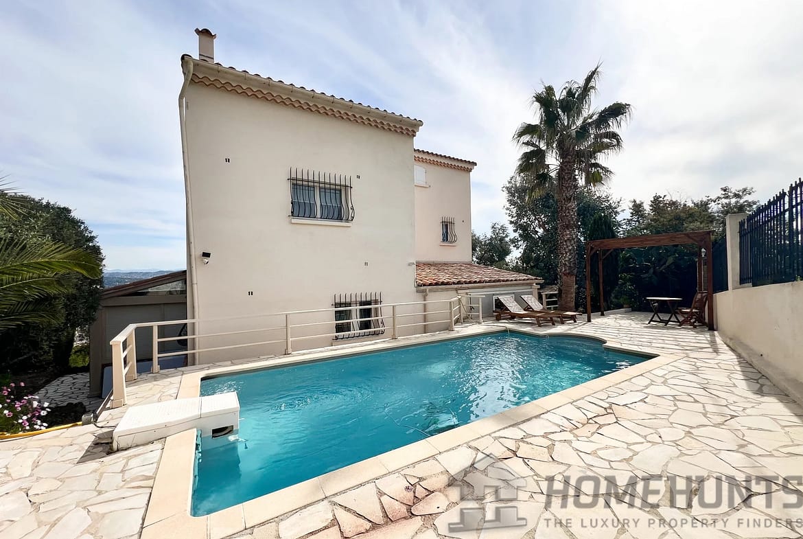 This villa is built on a plot of 948 m2, in the town of Mandelieu la Napoule known for its beautiful landscapes between the sea and the mountains, only 5 minutes from the beaches and 15 minutes from Cannes.