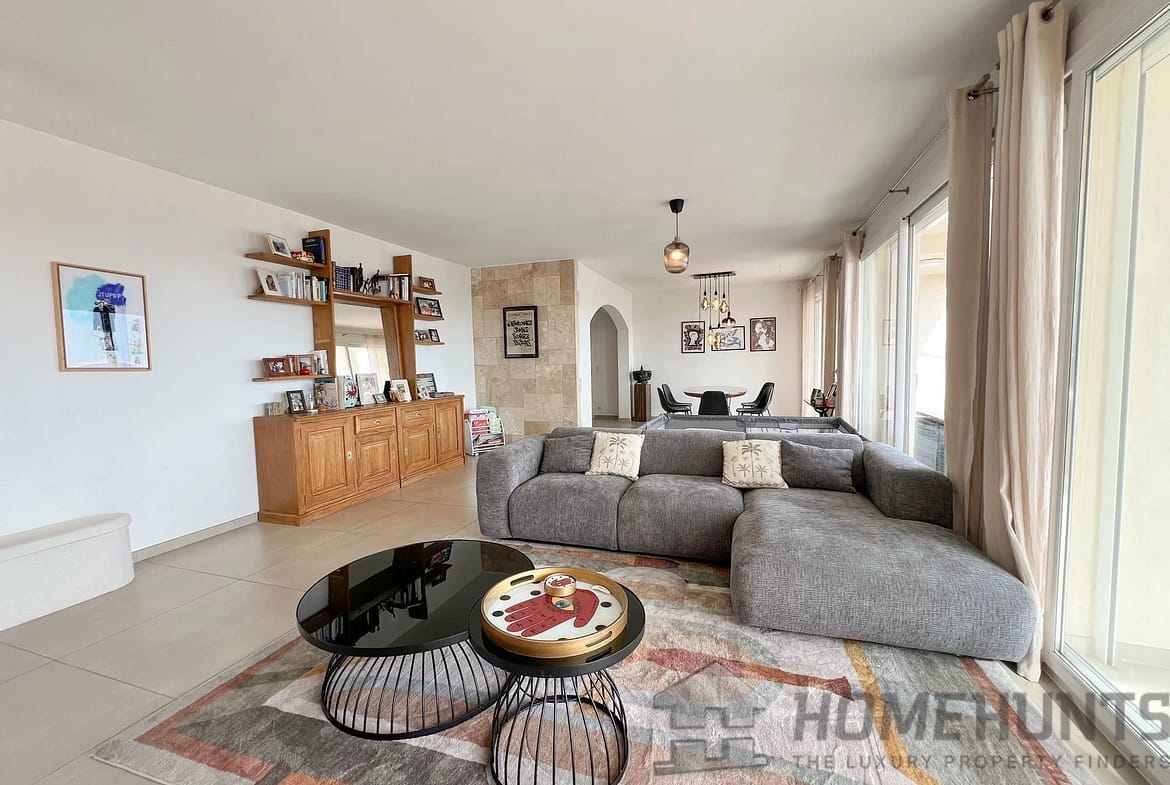 Accommodation, on the ground floor, the beautiful living space consists of a living and dining room, opening onto a large terrace allowing you to enjoy the panoramic view, as well as a large equipped kitchen, a loggia, a separate toilet and a room that can be converted into a bedroom as needed.