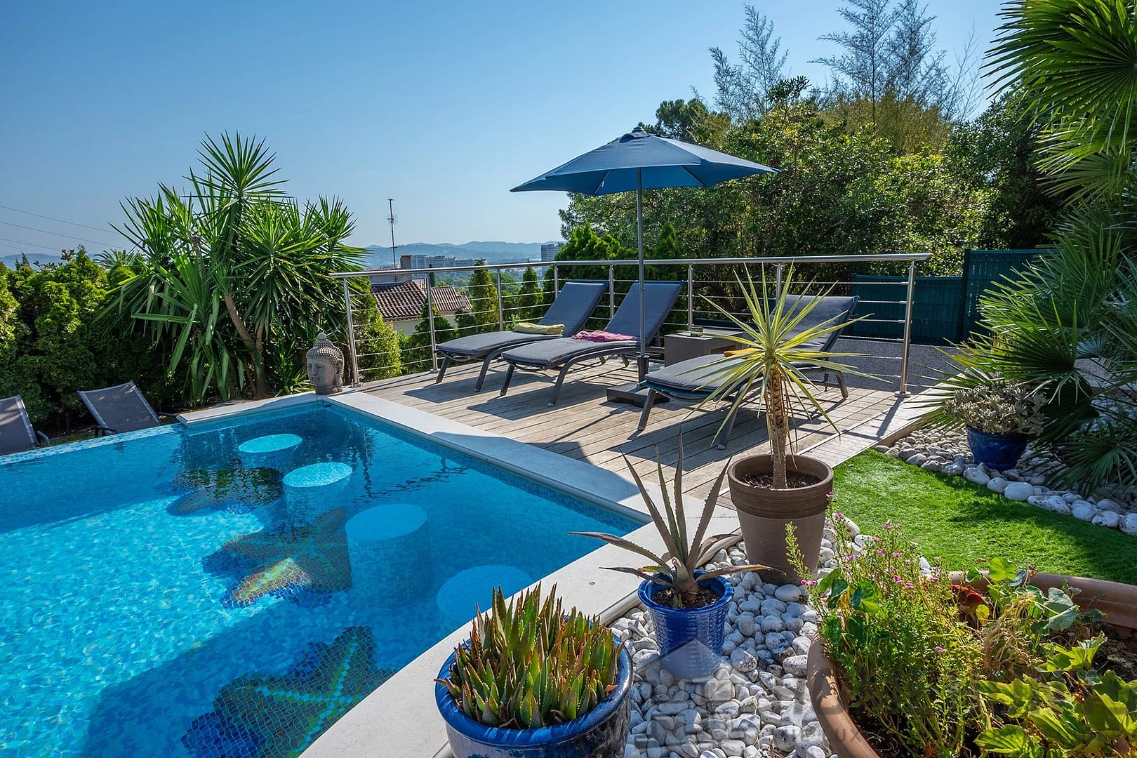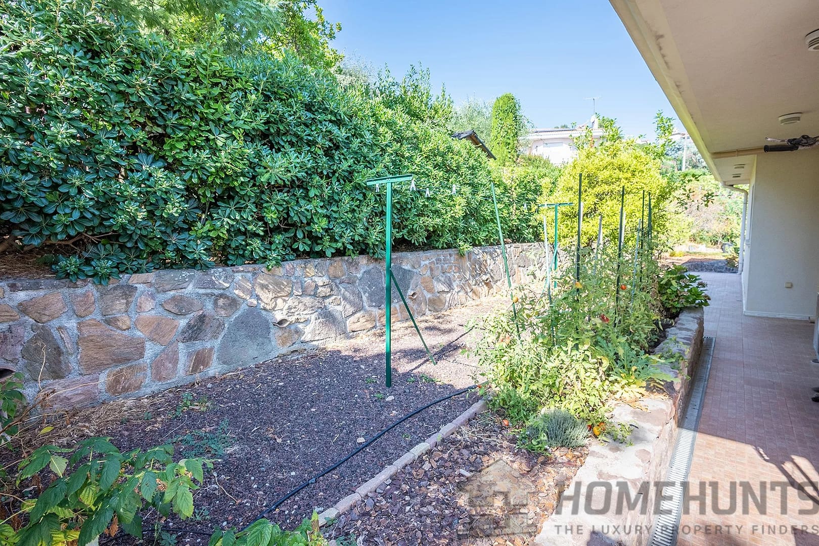 The property sits on a landscaped plot of 1,050 m2, with mature gardens, several spacious terraces ideal for outdoor dining, and at the rear, a charming collection of citrus trees and a vegetable garden for home-grown tomatoes.