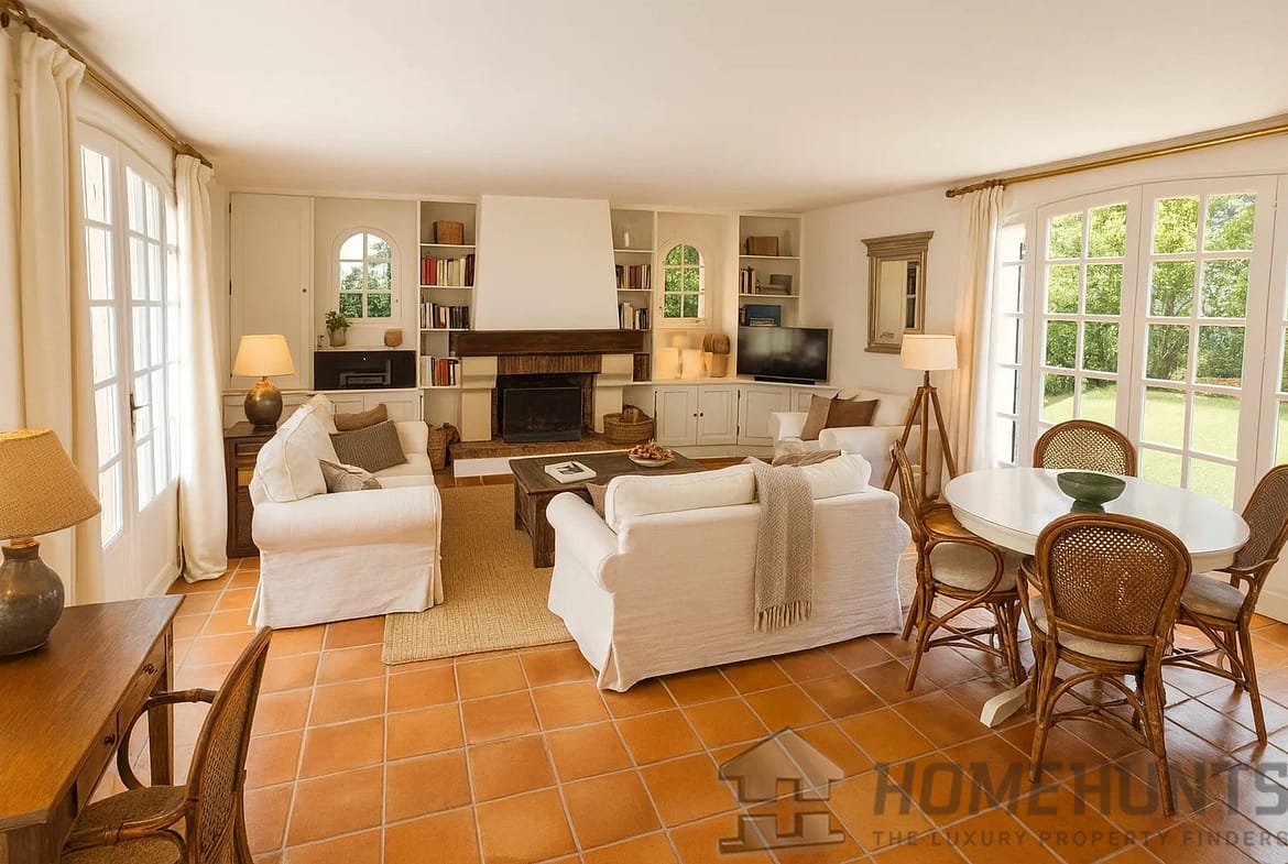 Set on a generous 1,550 m2 plot, the outdoor spaces are perfect for relaxation and entertaining, with a swimming pool, landscaped garden, and open views over the surrounding hills.
