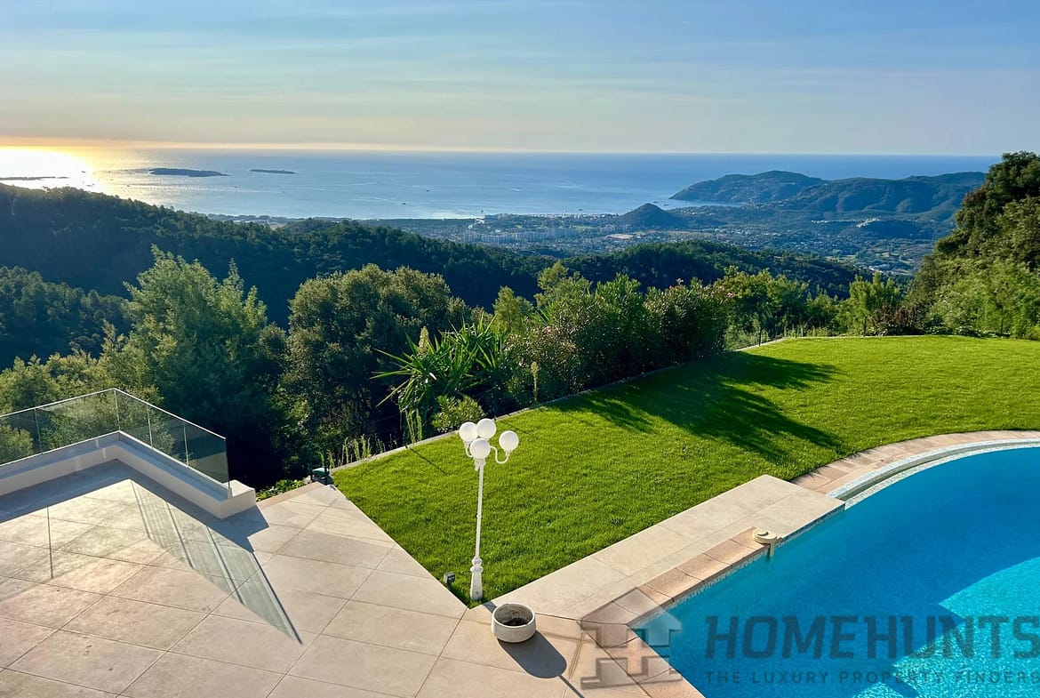 Perched in the sought-after hills of Tanneron, this south-facing villa offers breathtaking panoramic views and is just 15 minutes from Mandelieu-la-Napoule beaches and 30 minutes from Cannes Croisette.