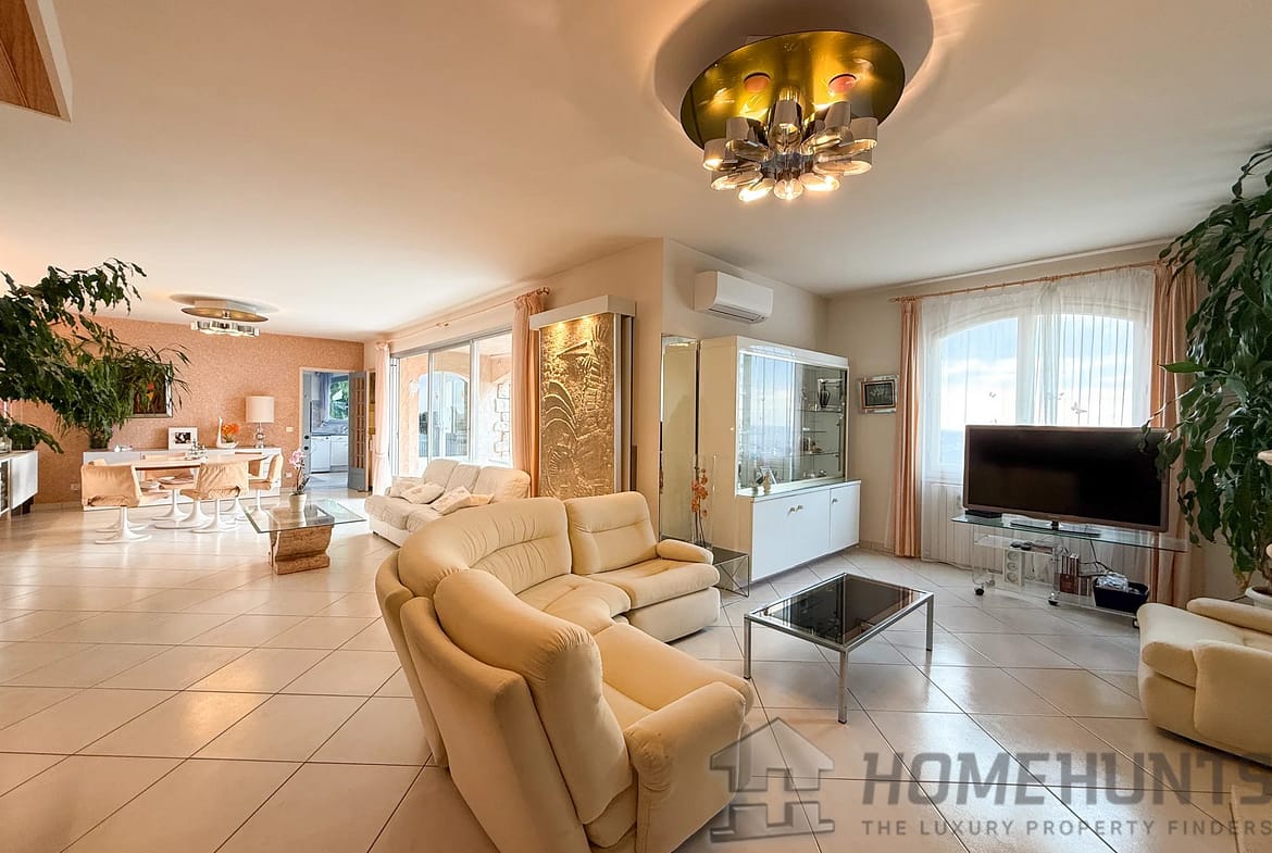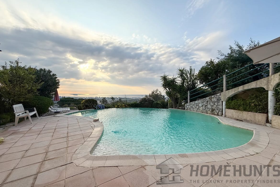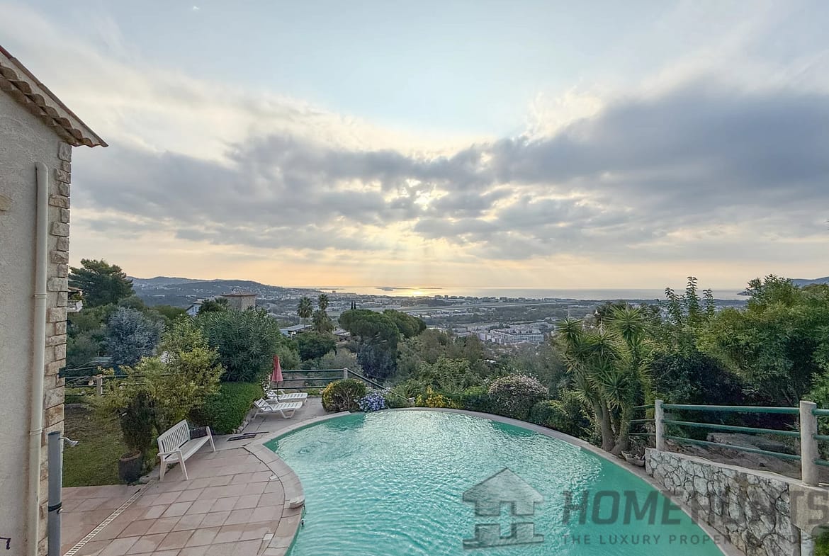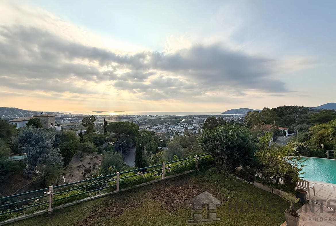 This spacious 290 m2 villa with a swimming pool offers a panoramic view of the Bay of Cannes.
