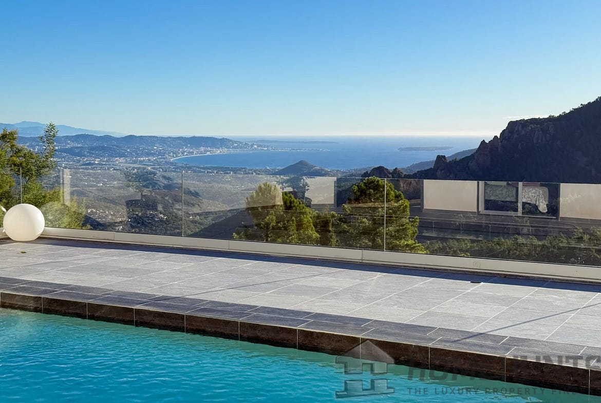 This charming 245 m2 Provencal villa with a heated pool offers a magnificent unobstructed view of the Bay of Cannes, the Estérel, and the mountains.